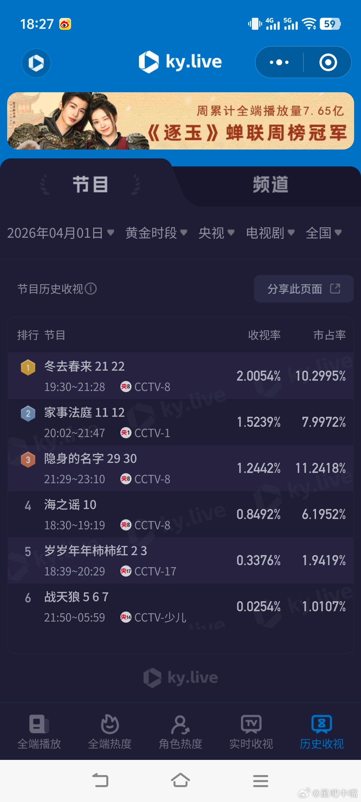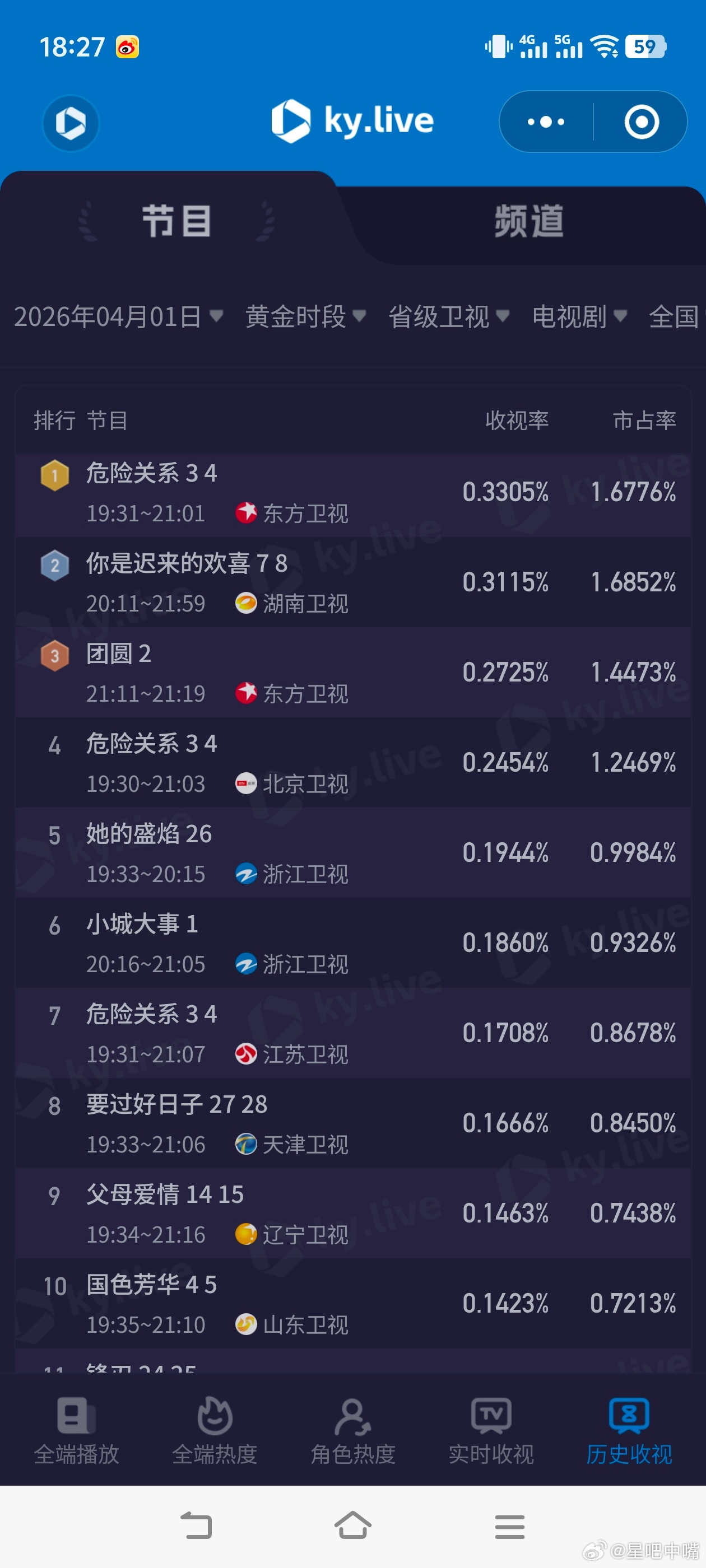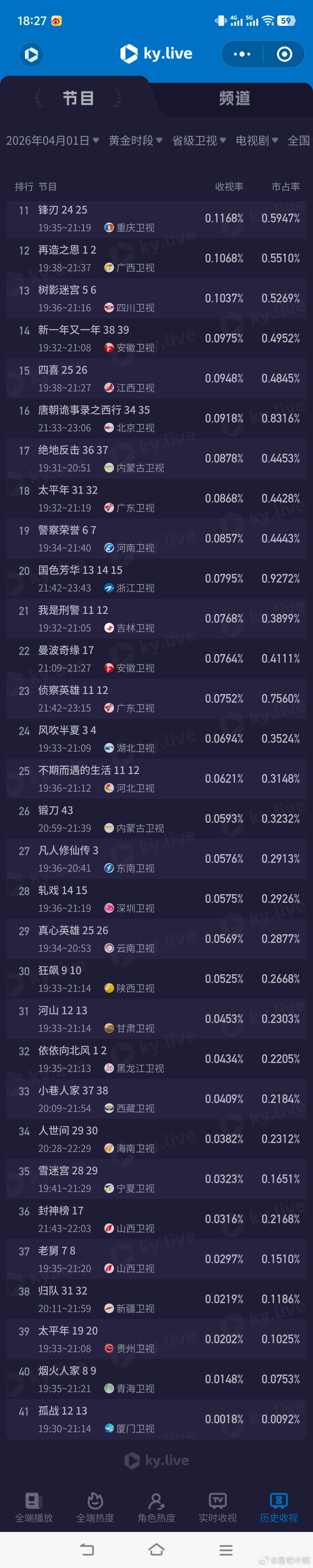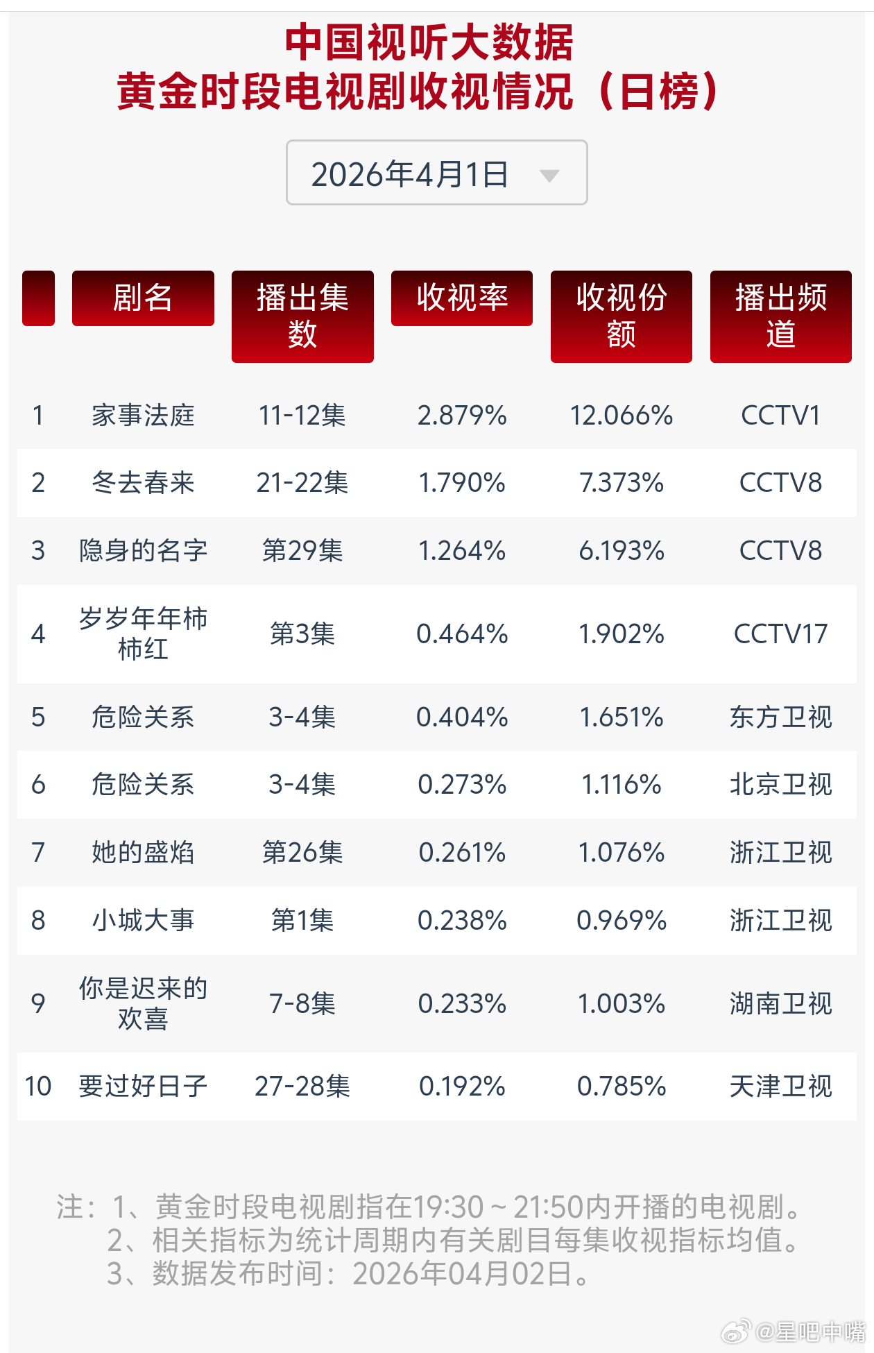 4月1日cvb收视日报!果然全降