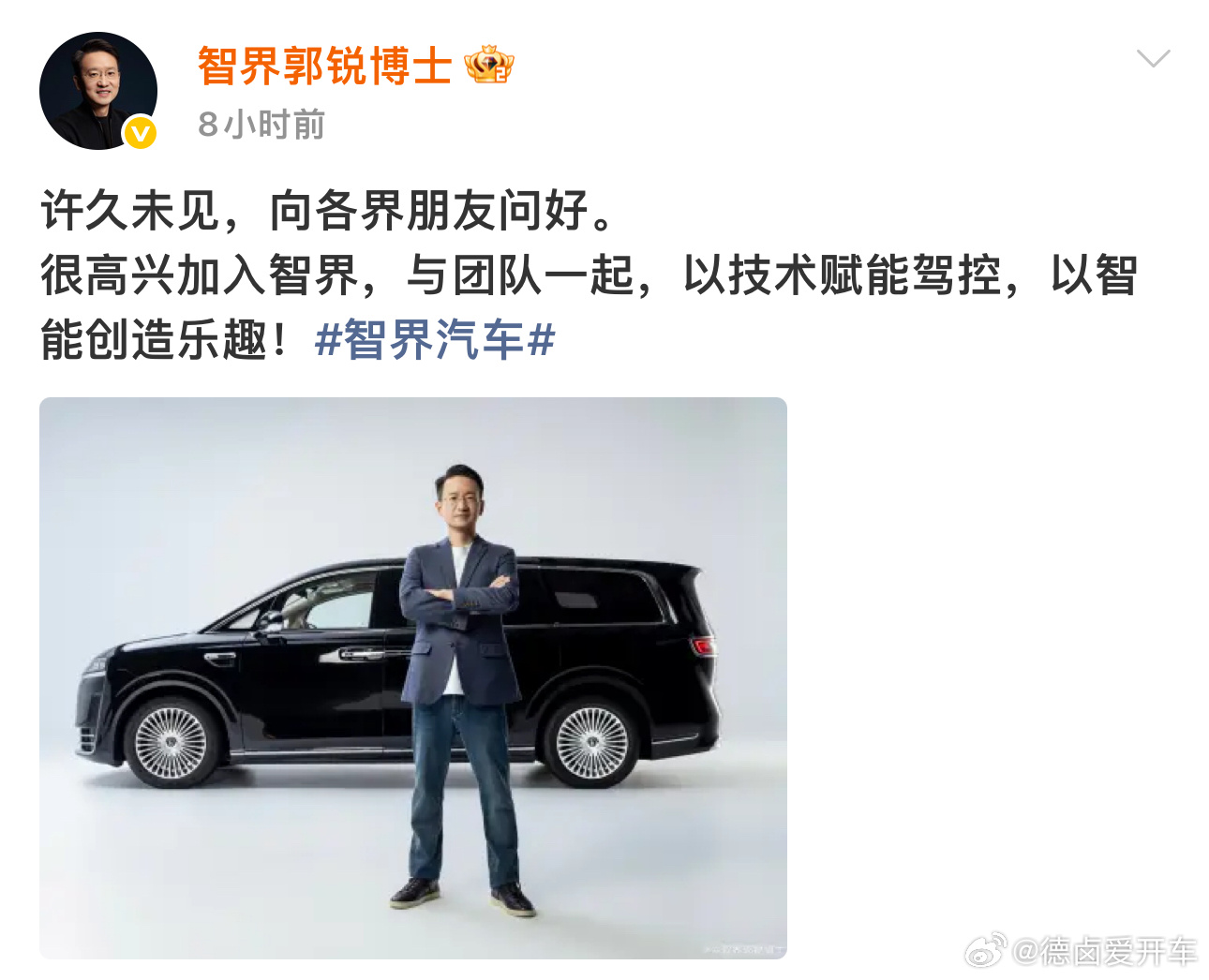 郭锐博士出任智界汽车董事长、CEO,其职业生涯中有 9 年的华为、荣耀履历。鸿蒙智行