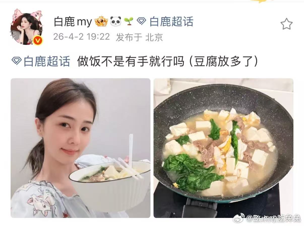 白鹿做饭豆腐放多了白鹿素颜做饭照 豆腐刺客上线!白鹿素颜做饭,量多料足超实在