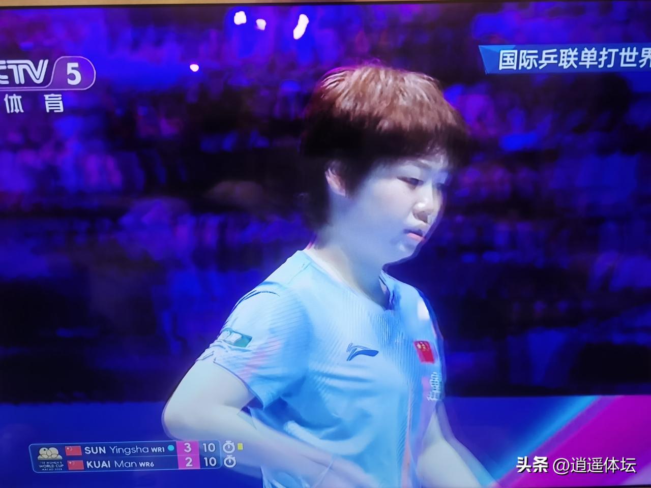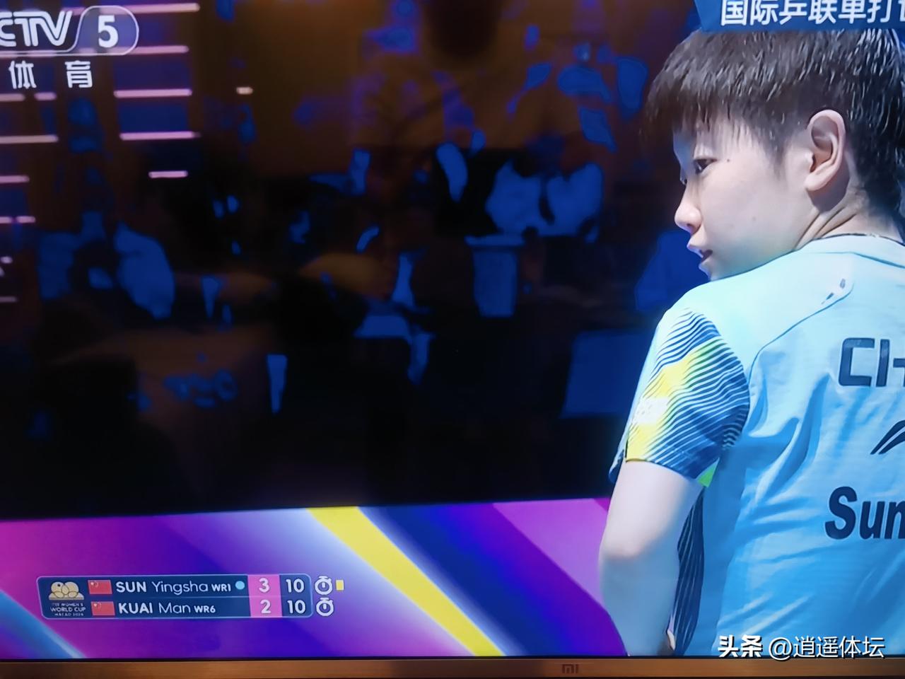 蒯曼7:2领先,竟然被孙颖莎翻盘!这场比赛真的是无语了,两人的水平差距不至于这么大吧? 国际乒联单打世界杯1/8决赛,孙颖莎和蒯曼的比赛前五局打成了3:2,孙颖莎领先!比赛第六局蒯曼7:2开局,没想到被孙颖莎翻盘,14:12赢下第六局,大比分4:2淘汰蒯曼,进入8强! 现场球迷的加油声还是影响了蒯曼的发挥,蒯曼好像对这种现场的呐喊声非常反感,从面目表情上可以看出,她的内心对这样的环境非常的不屑!