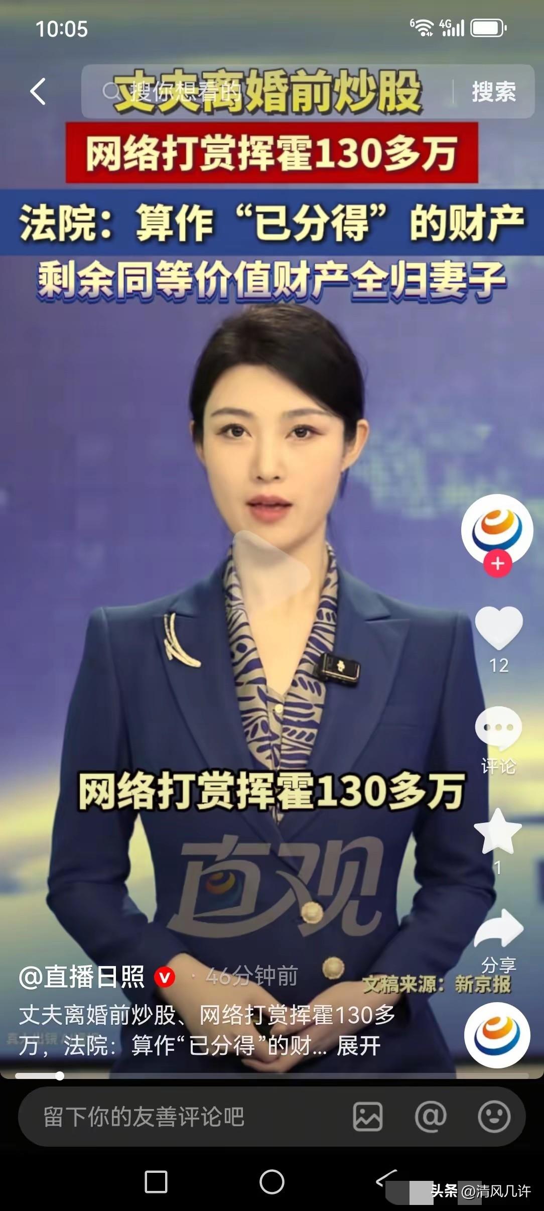 作天作地做自己!北京平谷,一男子和妻子分居期间,竟然偷偷把家里的卖房款、离职补偿金、提取的公积金,整整130多万元拿去炒股,结果亏损80多万,剩余的50多万,又心甘情愿的打赏了主播。男子以为,钱花光就不算数了,马上提出离婚,要求和妻子平分家产,双方闹上法庭。不料,法院的判决,却给了他一个大大的意外。 妻子接到离婚诉状的时候,整个人都懵了。两人因为感情不和分居已经有一段时间,她原本还在想着怎么处理后续的生活,没料到丈夫不仅要离婚,还堂而皇之地要求平分剩下的家产。直到她核对夫妻共同财产的流水,才发现家里那笔用来安置生活的卖房款,还有丈夫离职后拿到的补偿金、提取的公积金,加起来130多万的巨款,早就被丈夫悄无声息地转走了。 她去问丈夫,对方的态度极其敷衍,只说钱炒股亏了,剩下的打赏给了主播,花都花了,没什么好说的。 在丈夫看来,钱已经被自己消费掉,离婚分割财产的时候,这部分就可以一笔勾销,剩下的夫妻共同财产,他照样能分走一半。他甚至觉得,自己的钱自己做主,妻子无权干涉,分居之后,他的收支和妻子没有任何关系。 可他忘了,这些钱从始至终都不是他一个人的。卖房款是夫妻婚后共同房产的出售所得,离职补偿金、住房公积金,也都是婚姻关系存续期间取得的财产,按照法律规定,全部属于夫妻共同财产。 夫妻对共同财产,享有平等的处理权,任何一方都不能在未经对方同意的情况下,擅自处分大额共同财产,更不能以分居为借口,肆意挥霍本该属于两个人的积蓄。 案件闹到法庭后,法院首先核实了资金的流向和数额。经查明,男子在分居期间,先后将130余万元夫妻共同财产转入自己的证券账户,其中80余万元在炒股中全部亏损,剩余的50余万元,被他陆续用于网络直播打赏,短短时间内,130多万的夫妻共同财产被他挥霍一空,没有一分钱用于家庭生活。 男子在法庭上依然坚持自己的说法,他认为打赏是个人娱乐消费,炒股是个人投资行为,这些钱都是自己名下的财产,自己有完全的处分权,妻子无权过问。 但法院直接驳回了他的辩解,明确指出,婚姻关系存续期间取得的财产,不会因为分居就改变夫妻共同财产的性质。哪怕处于分居状态,只要没有办理离婚手续,双方的收入、取得的财产,依然属于夫妻共同财产,处分大额财产必须经过配偶同意,这是法律明确规定的底线。 法院审理时进一步明确,男子动用的每一笔钱,都属于夫妻共同财产。 他在分居期间,未经妻子同意,擅自将大额资金投入高风险的股市,造成巨额亏损,又将剩余资金用于网络打赏,这些行为明显超出了家庭日常生活的合理需要,完全符合法律规定的“挥霍夫妻共同财产”的情形,严重损害了妻子的财产权益,也违背了夫妻之间的忠实义务。 很多人可能会有疑问,钱已经花了,怎么分割?这也是这个案件最具突破性的地方。 法院没有简单地要求男子赔偿,也没有机械地对剩余财产进行平分,而是创新性地采用了“抵扣”的思路:将男子已经挥霍的130余万元,直接视为他从夫妻共同财产中已经分得的部分。按照夫妻共同财产平等分割的原则,双方原本各享有一半的份额,男子挥霍的金额,已经远远超过了他应得的部分,因此,剩余的同等价值的夫妻共同财产,全部归妻子所有。 这个判决,直接打碎了男子“花完就不用分”的侥幸心理。他以为把钱挥霍掉,就能让妻子少分财产,自己还能分走剩下的一半,却没想到法律会直接把挥霍的金额算成他已经拿走的份额,相当于他提前把自己的那部分财产花光了,剩下的,一分都别想再碰。 这不是法院的“偏心”,而是有明确的法律依据。《民法典》第一千零九十二条明确规定,夫妻一方挥霍夫妻共同财产,在离婚分割夫妻共同财产时,对该方可以少分或者不分。 而2025年施行的最高法关于适用民法典婚姻家庭编的解释(二),更是进一步明确,夫妻一方未经另一方同意,用夫妻共同财产进行网络打赏,数额明显超出家庭一般消费水平,严重损害夫妻共同财产利益的,直接认定为“挥霍”,另一方可以请求对打赏一方少分或者不分财产。 这个案件的判决,就是对这条法律的精准适用。男子的行为,不仅是对夫妻共同财产权的侵犯,更是对婚姻忠诚义务的违背。分居不是一方肆意挥霍共同财产的挡箭牌,更不是逃避财产分割的借口。婚姻关系存续期间,哪怕是分居状态,夫妻共同财产的处分,依然需要双方协商一致,任何一方的擅自挥霍,都要承担相应的法律后果。 对妻子来说,这个判决是迟到的公道。她和丈夫共同打拼多年积累的财产,被丈夫在短时间内肆意挥霍,原本她可能要面对人财两空的局面,而法院的判决,最大限度地维护了她的合法权益,让挥霍者付出了应有的代价,也给了所有在婚姻中遭遇恶意财产侵害的无过错方一个有力的支撑。 各位读者你们怎么看?欢迎在评论区讨论。