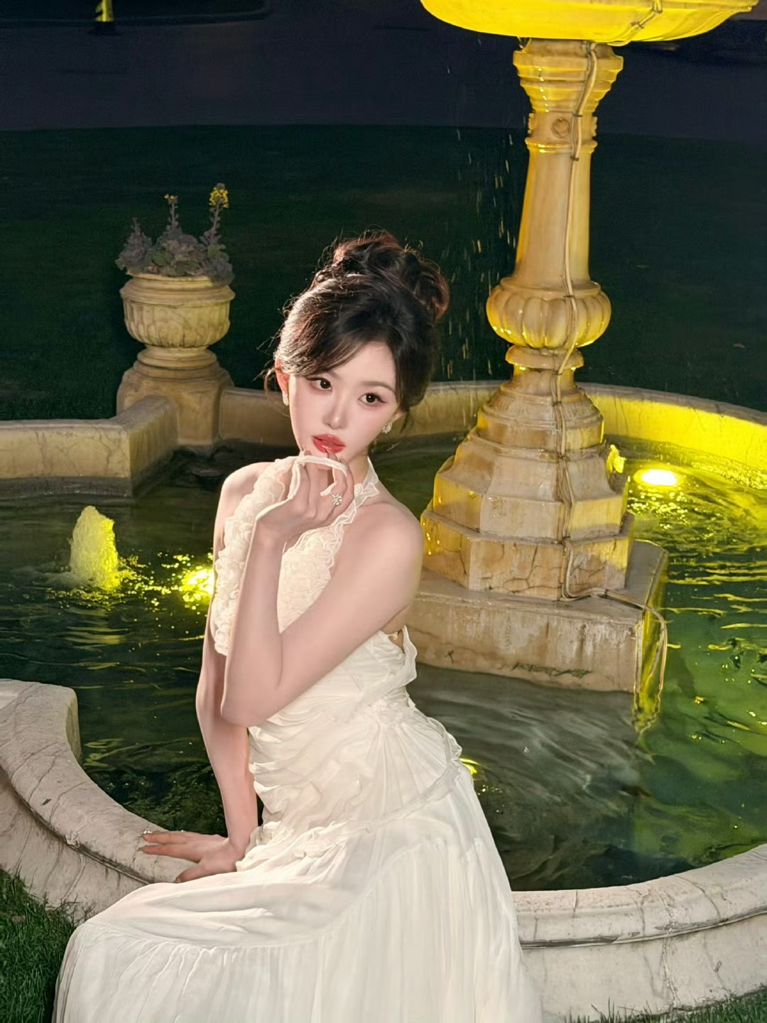 孔雪儿孔雪儿挂脖白纱裙 孔雪儿直播造型,白纱裙青苹果,好美!孔雪儿一颗青苹果