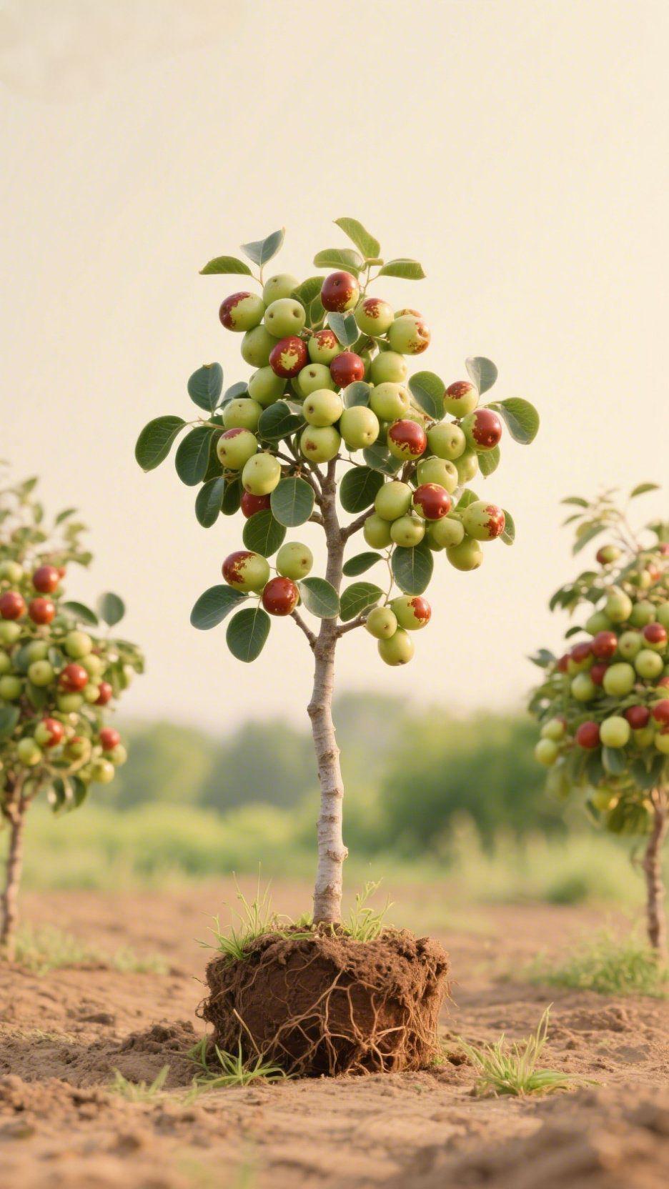 《青枣裹着秋光》 夕光刚漫过田埂,我蹲在这株矮枣旁时,枝桠正坠着半树青红。 青的裹着晨露的凉,红的浸了秋阳的甜,风一吹,圆果颤得连叶隙都晃着脆香。指尖碰上去是硬挺的,轻轻一弹,脆响裹着土气漫过来——像小时候扒着院角的枣树,连指甲缝都沾着枣皮的涩,却攥着满手脆甜不肯走。 此刻风裹着泥香漫过来,青红的果混着夕光,连空气都成了咬一口会响的甜。这半树的圆滚滚,哪里是果子,是把整个秋的软,都揉进了颗颗饱满的脆里。 青枣的秋甜 田园治愈感