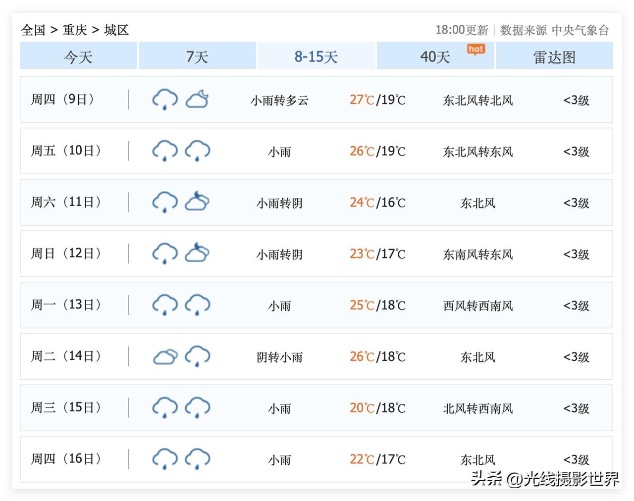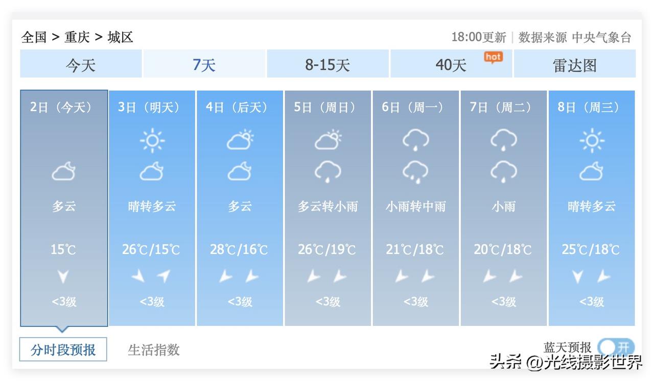 3个好消息!4月3日,春假第一天,重庆要出太阳啦!4月4日,清明节假期第一天,重庆依旧出太阳!4月5日,清明节,白天重庆不下雨……而且,为了让重庆人充分感受清明时节雨纷纷的意境和乐趣,4月5日晚上可能会下雨,4月6日和7日,重庆可能连续两天下雨…… 2026年清明节的天气,简直是堪称完美啊! 中央气象台的最新天气预报显示,4月8日,星期三,重庆还是有可能出太阳啦! 只是,问题是,4月9日到16日,重庆主城区,可能会持续阴雨连绵……哎呀!这鬼天气哟! 好吧,这个清明节,成都市区的酒店宾馆民宿基本不涨价,人气应该不如重庆主城区,所以,建议重庆人带孩子去成都旅游……可千万不要五一节去成都旅游哦!到时候,别怪我没有提醒你! 这个春假,这个清明节,成都天气总体也很不错,而且,酒店宾馆民宿,基本没怎么涨价……人气应该一般般……比较适合淡季出游!