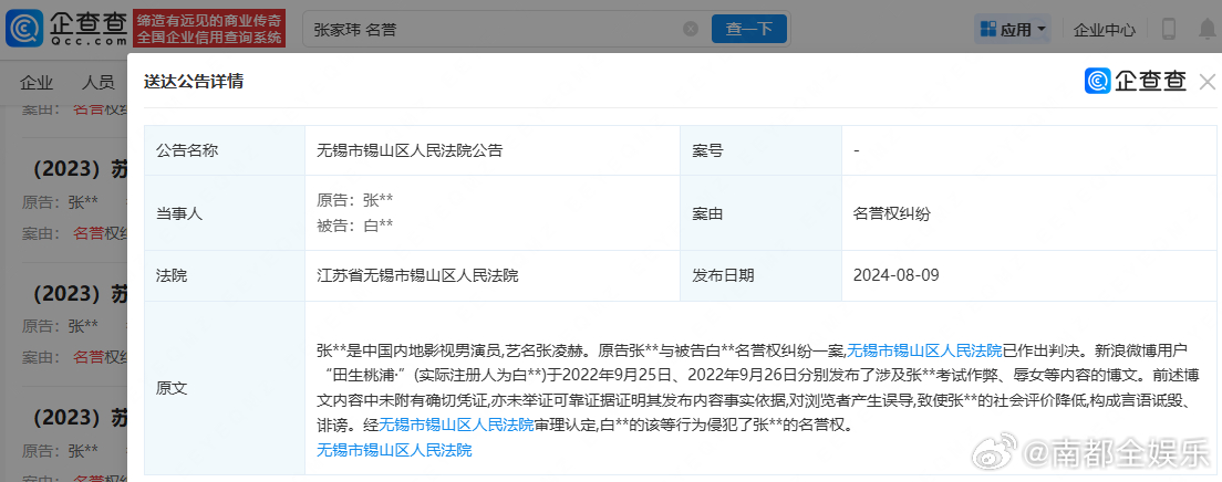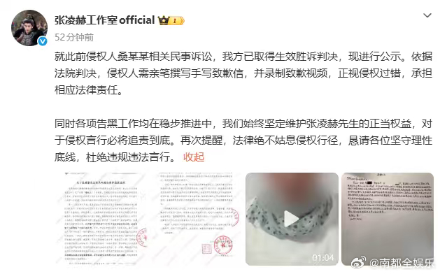 张凌赫黑粉公开致歉张凌赫已起诉多人名誉侵权 据发布公告,称侵权张凌赫方依据法院判决,亲笔撰写手写致歉信,并录制致歉视频。据企查查APP显示,此前张凌赫(本名:张家玮)已发起多起维权诉讼,其中,白某某被认定侵犯了张凌赫的名誉权。