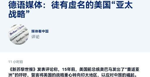 德媒对于美国很失望,美国对华战略完全失败!!4月1日,德媒刊文声称,15年前,美国前总统奥巴马发出了“重返亚洲”的呼吁,誓言将美国的战略重心转向印太地区,以应对中国的崛起。然而,十五年后的今天,“重返亚洲”仍只是一句空泛的口号。而今,美国再次在中东卷入战争,直接影响到了美国在亚太地区的军事部署。 德国媒体最近发声,对美国在亚太的战略执行情况表达了明显失望。4月1日,德语媒体如《新苏黎世报》刊文指出,奥巴马2011年提出的重返亚洲计划,过了十五年还是停留在口号阶段。现在美国因为中东伊朗冲突,又把注意力拉回那里,直接影响到亚太地区的军事安排。文章提到,美国原本想把更多资源投到印太,结果中东这块麻烦事一直甩不掉,导致兵力和装备两头顾不上。 美国这些年一直说要把战略重心放到亚太,应对地区力量变化。可实际操作中,中东局势反复把资源拉走。2026年初伊朗冲突爆发后,美军从亚太抽调了不少力量过去支援。中东美军总兵力很快就超过五万人,规模接近过去伊拉克战争时期。82空降师这样的快速反应部队被派到伊朗周边区域,多艘航母战斗群也留在中东海域执行任务。本来在西太平洋巡航的舰艇,现在航线调整后留在那边,亚太这边的军事存在就相应减少了。兵力和装备总数有限,中东多用一分,亚太就少一分,这种拉扯让重返亚洲的说法听起来更像空头支票。 更实际的问题出在弹药消耗上。现代冲突打起来就是拼消耗,美军高端弹药库存本来就不宽裕。对伊朗作战才四周,就发射了超过850枚战斧巡航导弹,而美国平时一年只采购90到100枚左右。现在库存已经掉到2020年水平的约三分之一。萨德拦截弹在短短12天内消耗了23.2%的库存,可美国年产能只有37枚,要把缺口补上得等好几年。这暴露了美国军工产业的深层短板。冷战结束后,军工业整合成几家大公司主导,平时追求零冗余生产,不留太多库存。战时想快速扩产,产能跟不上节奏。企业更愿意做利润高的高端平台项目,对常规弹药的生产线投入不够。即使签了七年扩产协议,短期内也填不上窟窿。 没有足够弹药储备,美国在亚太的军事威慑就显得底气不足。兰德公司以前的模拟显示,要压制中等规模的区域拒止体系,需要消耗两三千枚精确制导武器。可现在连中东的消耗都吃力,哪有多余的弹药去支撑亚太可能的行动。而且军工生产依赖的关键原材料还受制于外部,63%的锑进口来自中国,高纯度铝粉、钛合金等也离不开海外供应。想扩产,先得过原材料这一关,这让整个补给链条更脆弱。 盟友的信任也受到影响。美国发动伊朗相关行动前,没有充分和伙伴打招呼,导致油气价格上涨、供应链受冲击,还要求盟友参与护航任务。欧洲那边反应强烈,德国官员公开表示,美国的做法不尊重伙伴关系,德国需要加强自身国防和技术独立性。法国直接拒绝参与护航,英国即使有意愿也顾虑很多。亚太盟友看到这些,也开始重新盘算。日本虽然订购了400枚战斧导弹,但心里清楚不能把所有安全都押在美国身上。印度则在中美之间保持更大平衡,展现自主性。这种信任松动,让美国想构建的同盟体系出现裂痕。没有盟友全力配合,重返亚洲就更难落实。 经济层面,美国的做法也让自己在亚太处于被动。早年推动的跨太平洋伙伴关系协定,后来被特朗普政府放弃。中国主导的区域全面经济伙伴关系协定却在稳步推进,成员国间贸易联系越来越紧密。美国后来加征全面关税,本想施压,结果也波及到东南亚盟友。越南的电子产业、柬埔寨的纺织业都受到影响,这些国家不得不重新调整贸易方向,反而和中国经济联系拉得更近。 美国对华战略面临实力和野心不匹配的现实。想同时顾及中东和亚太,结果资源拉扯明显。十五年过去,重返亚洲的承诺没有完全兑现成行动,亚太军事部署受中东冲突直接拖累。