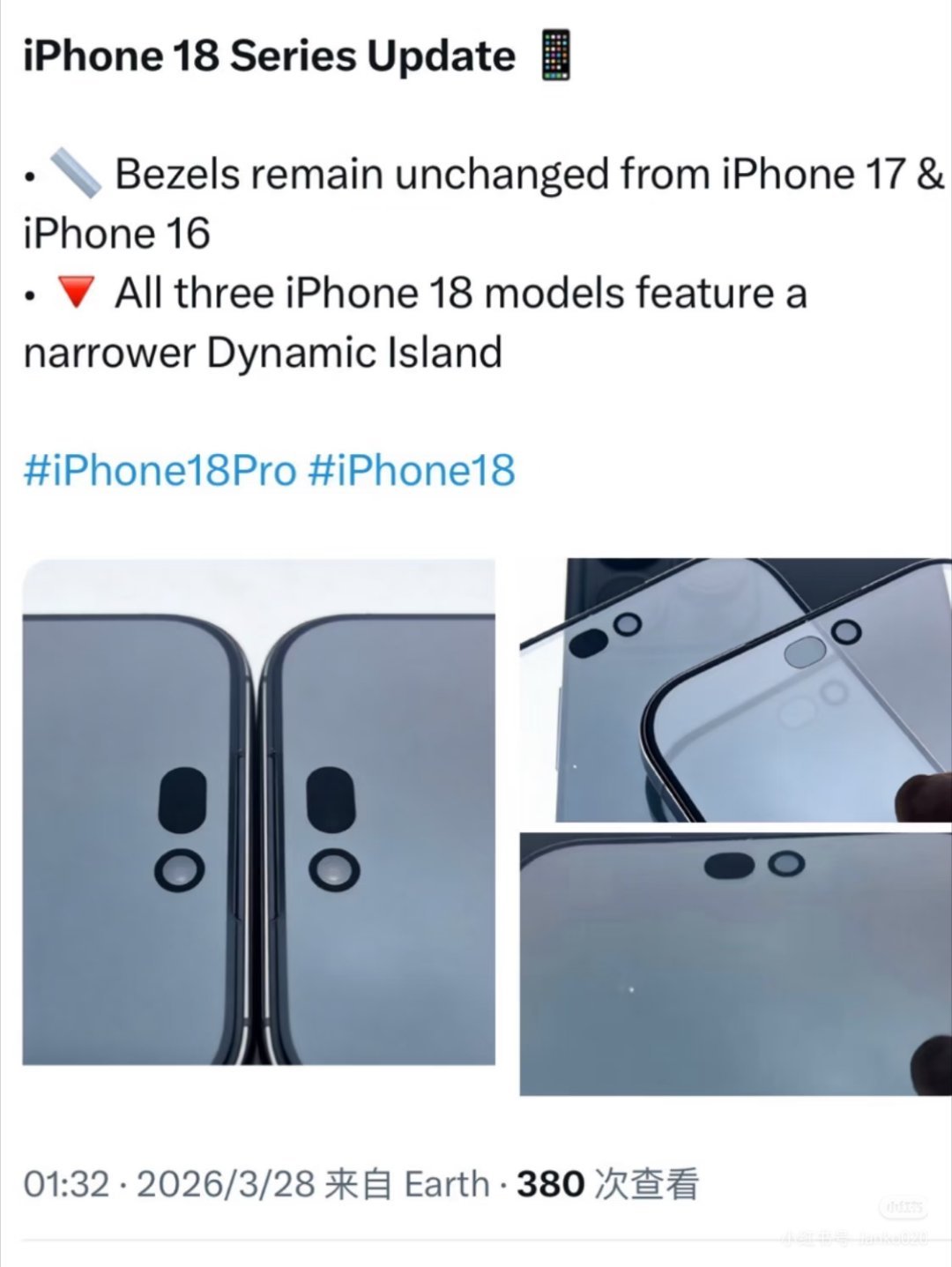 iPhone18Pro模具偷跑灵动岛大幅缩小,买买买