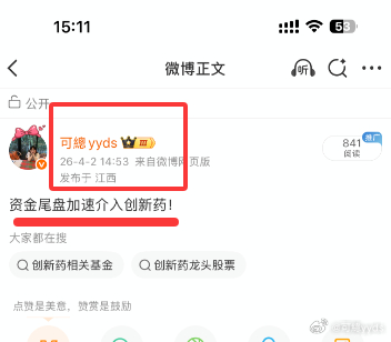 创新药我没预料到今天会发飙,踏空了,没吃到。四月我就不敢压会涨。