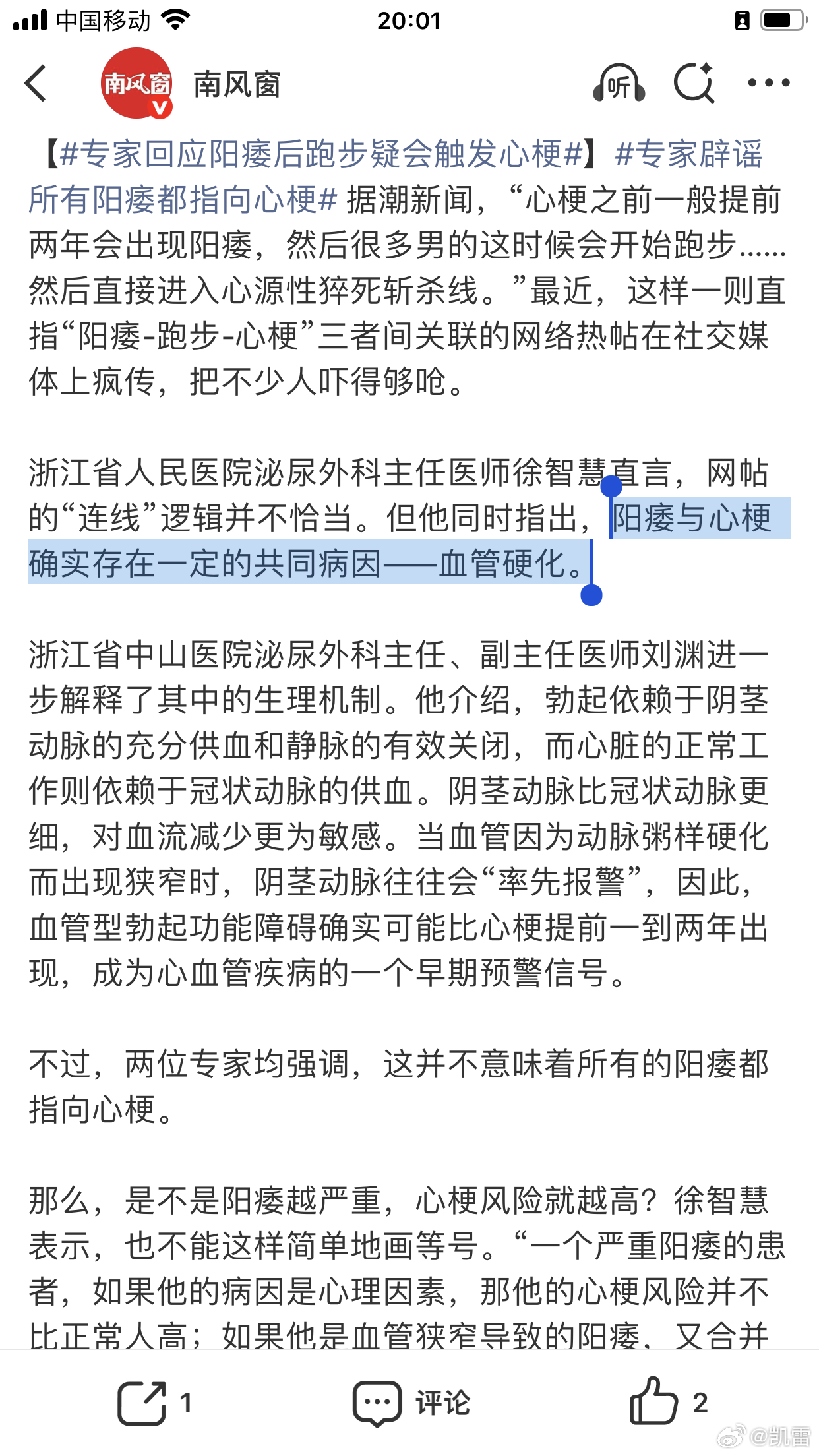 专家回应阳痿后跑步疑会触发心梗阳痿与心梗确实存在一定的共同病因——血管硬化。 原