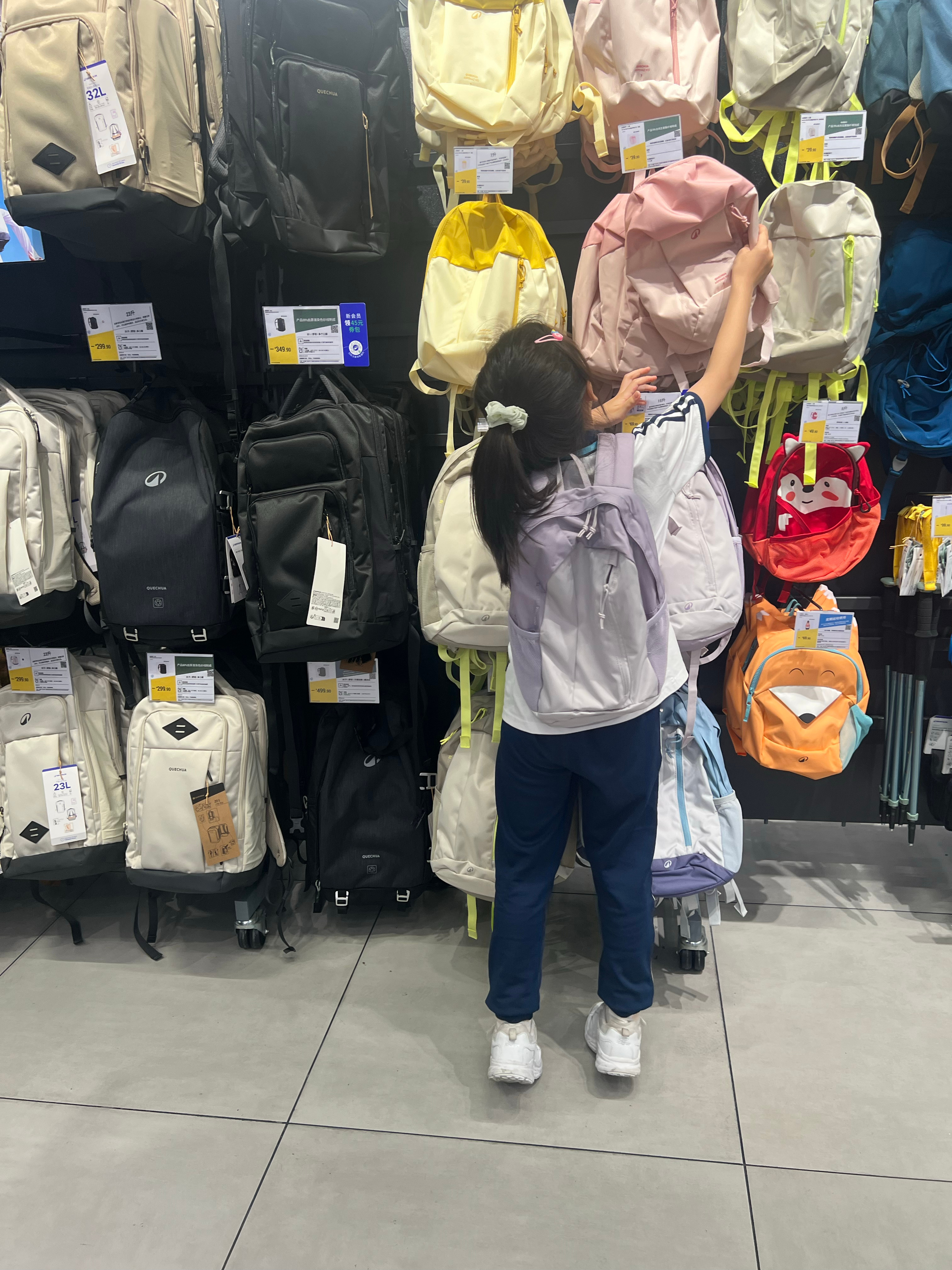 米米明天去春游去长隆动物园刚一放学赶紧去买个轻便书包不大不小的迪卡侬确实经济实惠