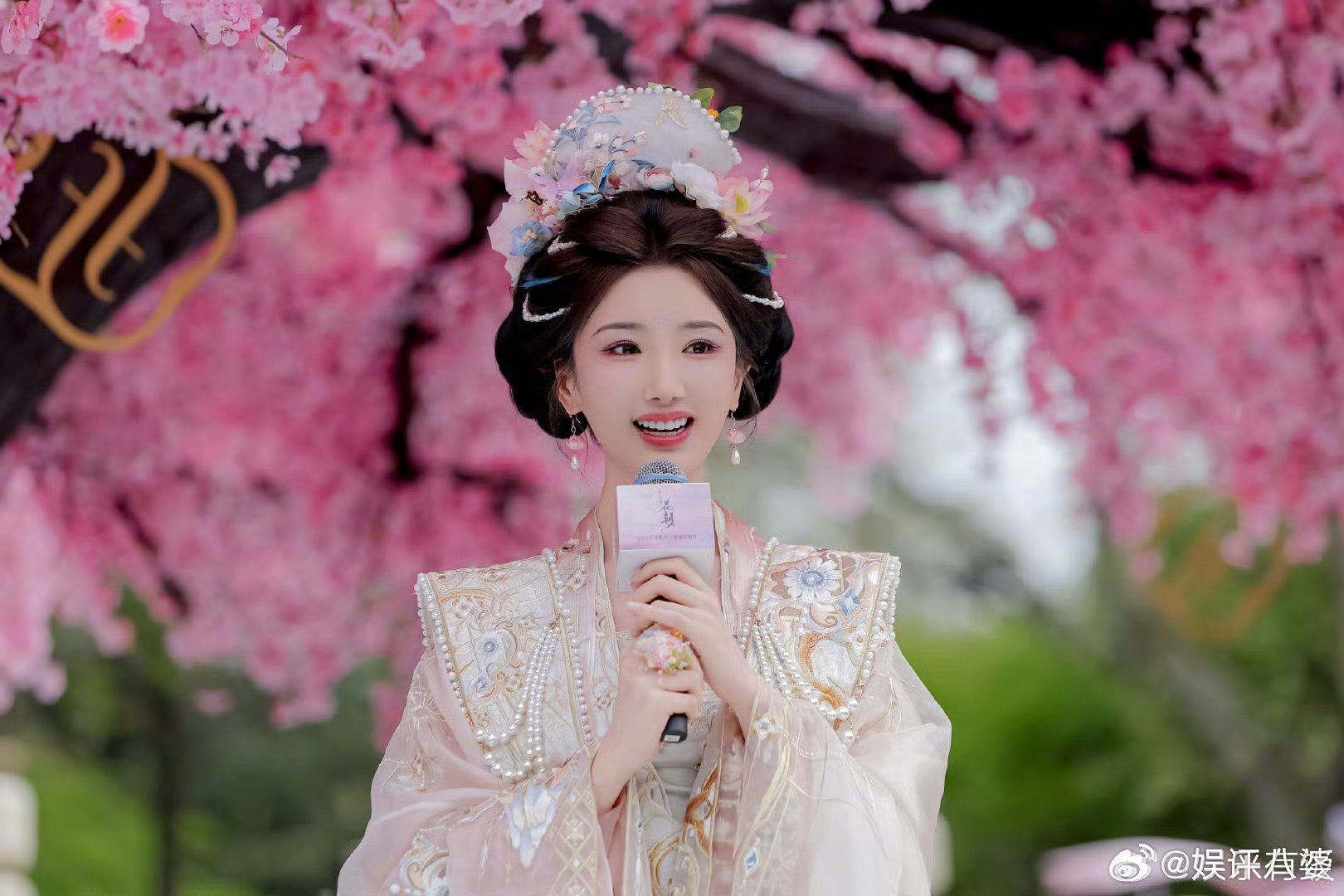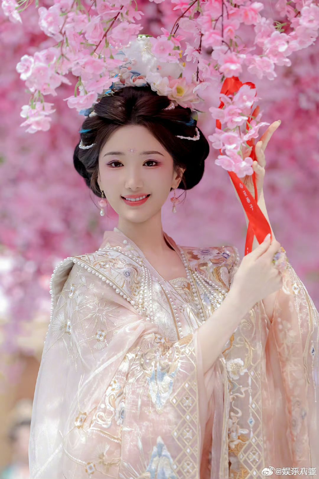 粉紫花神妆糅合春日灵气,浅粉花丝刺绣华服衬得毛晓彤温婉动人✨ 轻捻花枝倚油纸伞,把东方美学的柔美都揉进眉眼,一起来共赴这场浪漫花朝盛会吧🌸毛晓彤
