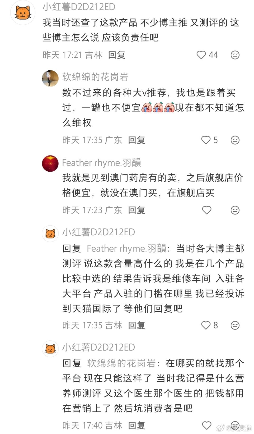 网友评论:推荐这款产品的这些明星、大V应该重罚,应该赔偿违约金,赔偿消费者!已吃两瓶优思益消费者发声科技先锋官