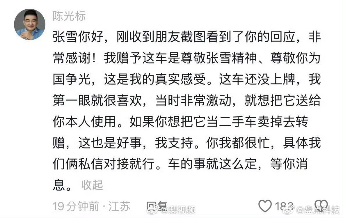 陈光标回应张雪要卖车哈哈哈哈这下陈光标算是遇到对手了