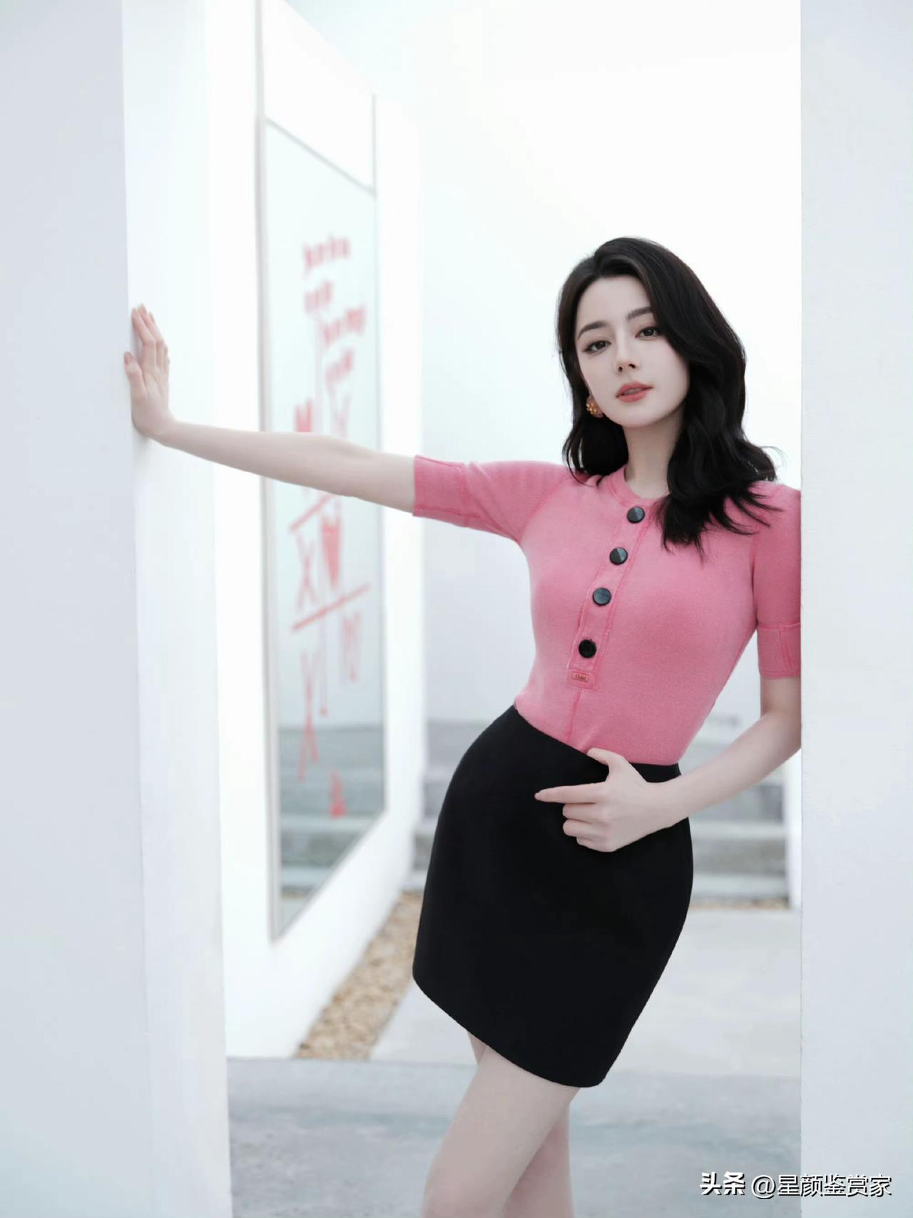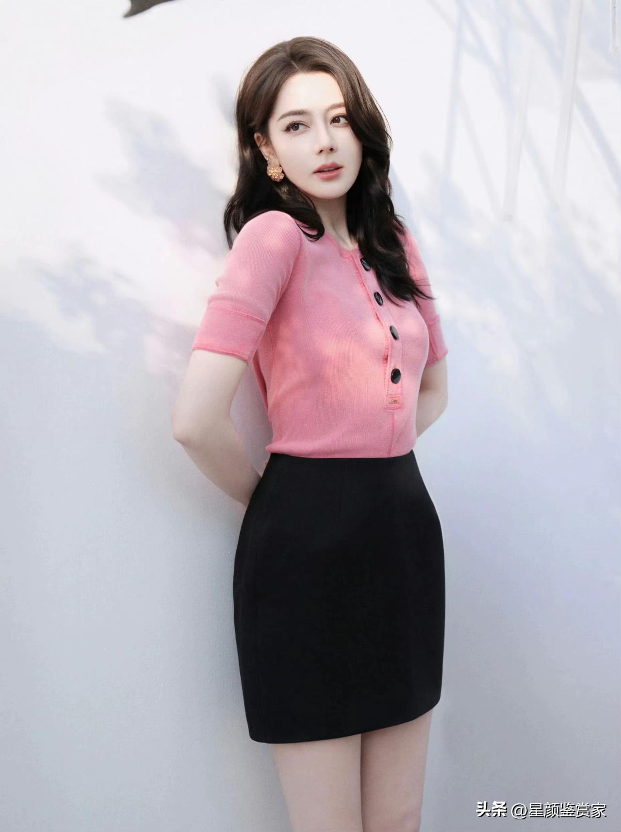 迪丽热巴~粉上衣+黑短裙+细带高跟鞋,这套搭配把性感和优雅平衡得刚刚好,谁看了都