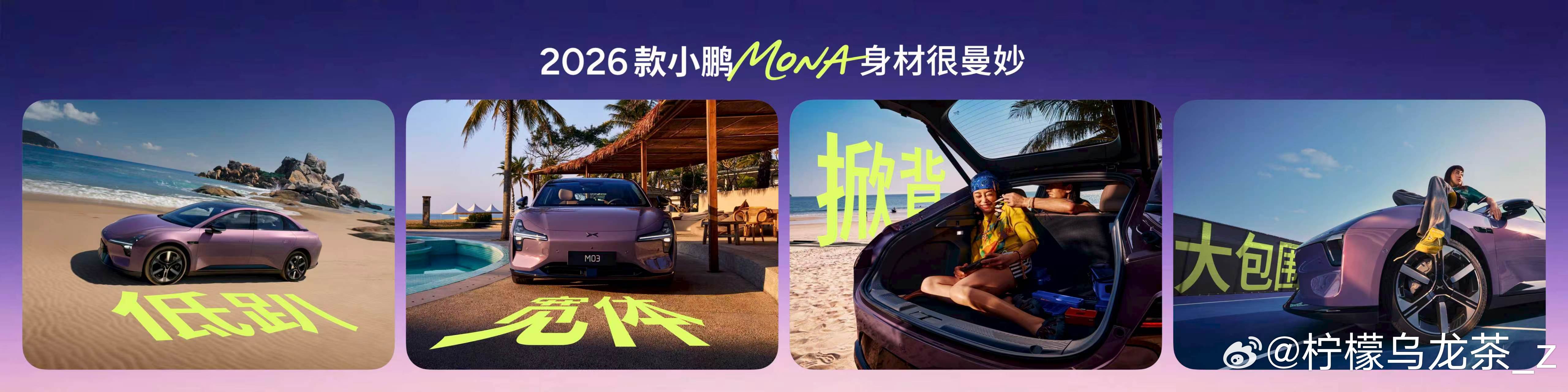2026款小鹏MONA M03身材依旧很曼妙,延续年轻化、高颜值的轿跑造型,气场十足。小鹏MONA升级了车漆工艺,清漆厚度提升20%,光泽度提升到92以上,在阳光下的观感达到了接近豪华车的水平;同时焕新全车的运动包围,黑色钢琴烤漆质感包围打造更低视觉重心,更低趴更有运动感,视觉效果更吸睛。两款轮毂套装选装,让颜值更进一步;电动掀背尾门+超600L超大后备箱,兼顾好看与实用,轻松解锁后备箱集市、露营等多元年轻场景。2026款小鹏MONA今日上市2026款小鹏MONA大大大大大升级