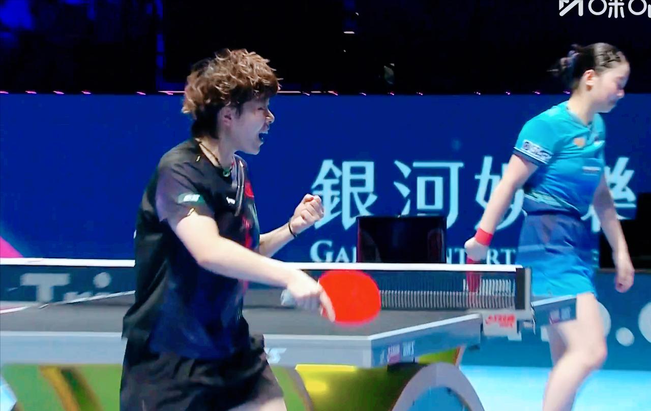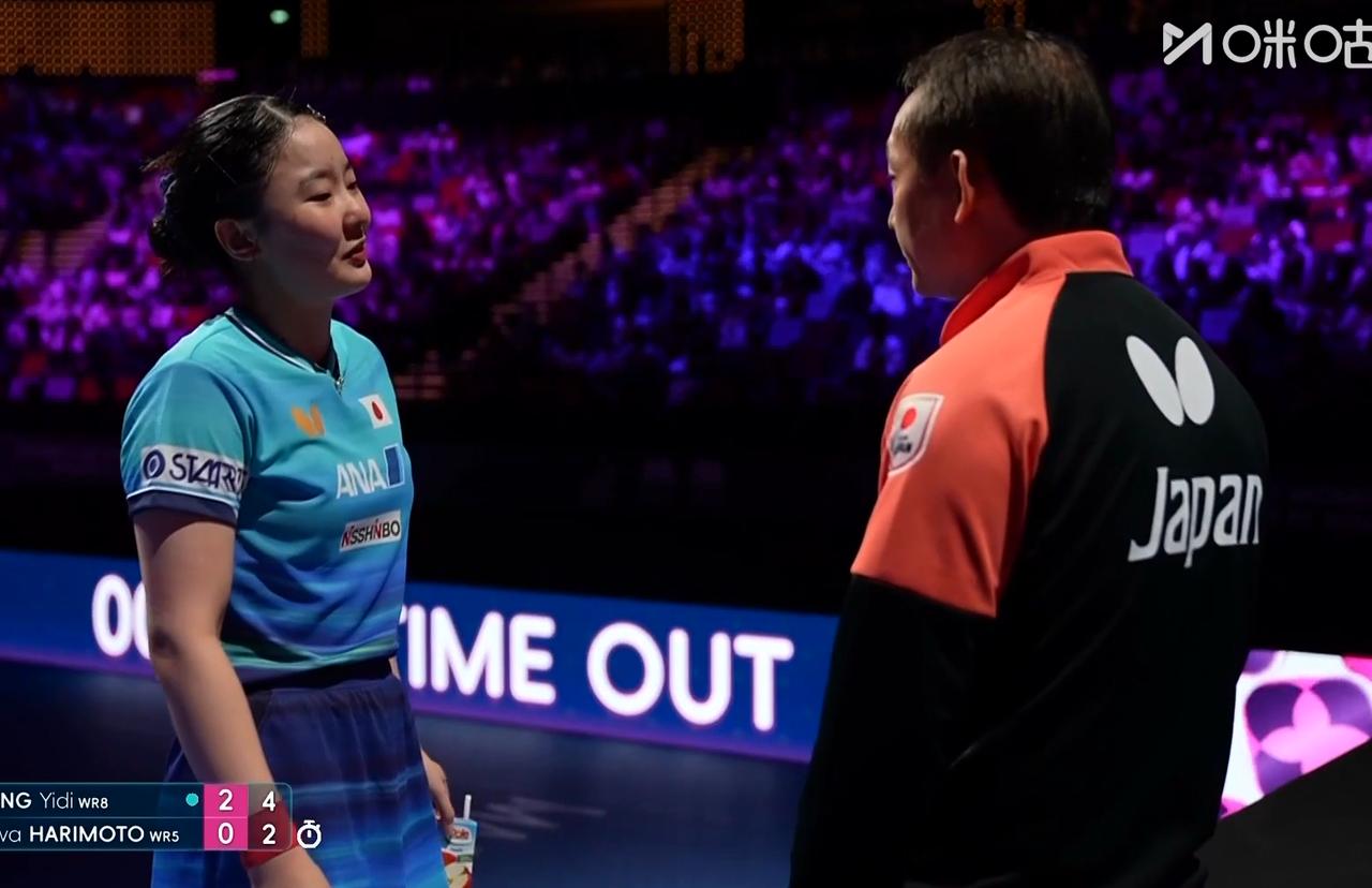 张本美和被大迪打急眼了,发球直接回抛! 结果直接被裁判罚了一分。 张本美和还跑过去朝着裁判撒娇, 但是照样扣分了。 张本美和崩溃了, 直接叫了暂停。 暂停回来开始搏杀, 追到了4:4平, 随后两人一路胶着, 7:7平之后, 大迪10:8拿到局点, 10:9的时候, 大迪叫了暂停。 回来12:10拿下。