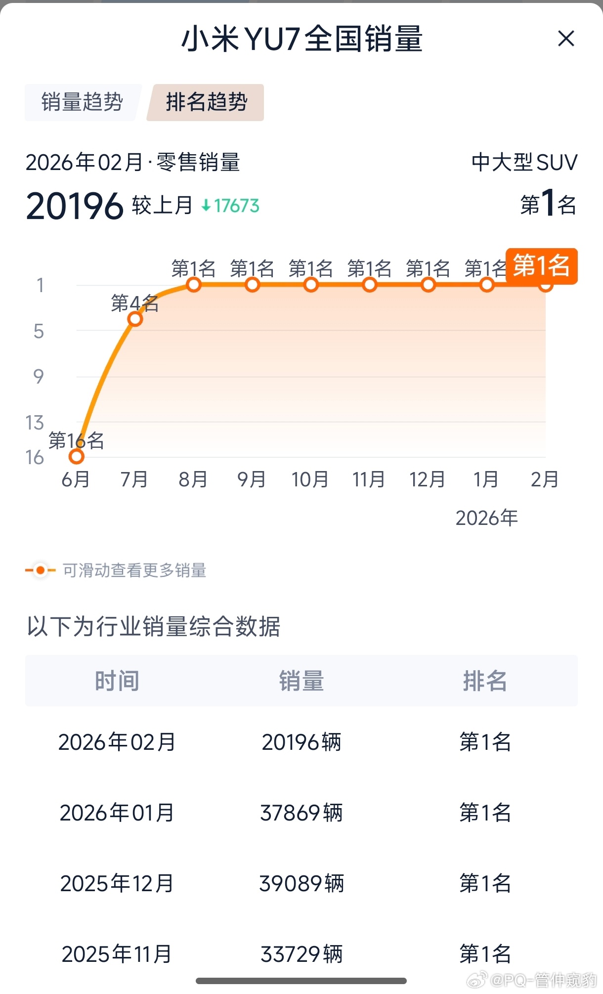 上一代SU7销量大多时候超过了Model3以新SU7的产品力,持续领先几乎是板上钉钉