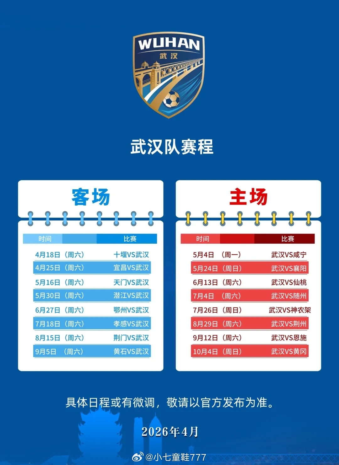 2026年湖北省城市足球联赛揭幕战将于4月12日正式打响。这是一场被全省球迷寄予厚望的“楚超”盛事——17个市州,146场对决,贯穿全年,激荡荆楚。武汉华工科技队作为武汉代表队,将以“不服周、铆起搞”的城市气魄,为城市荣誉而战,为英雄之城正名。