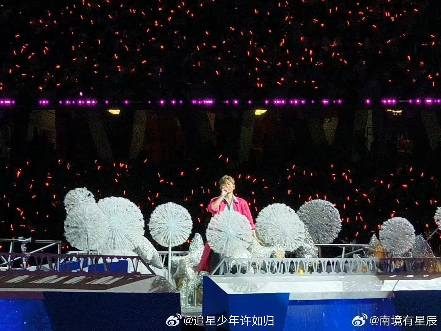 在张杰演唱会上看到蝴蝶了 真的被美晕!张杰演唱会的造型仙气飘飘,灵动的剪裁加上舞台效果,真像有蝴蝶在他身边翩跹,太惊艳了!