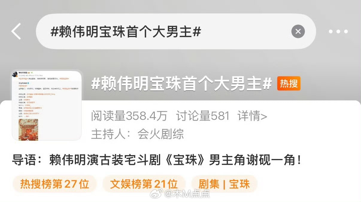 这人设伟明演的出来吗 ,都大男主上了 剧名都叫宝珠还买大男主通稿究竟何意味导演是九重紫副导 看看怎么调教吧…伟明下沉真的挺帅的 就是不知道为啥一上镜就很惊人(目前就大梦归离里面是好看的) 希望九重紫副导能拯救伟明吧 演技方面庄序演的其实一般 可能在进步吧~客观发言