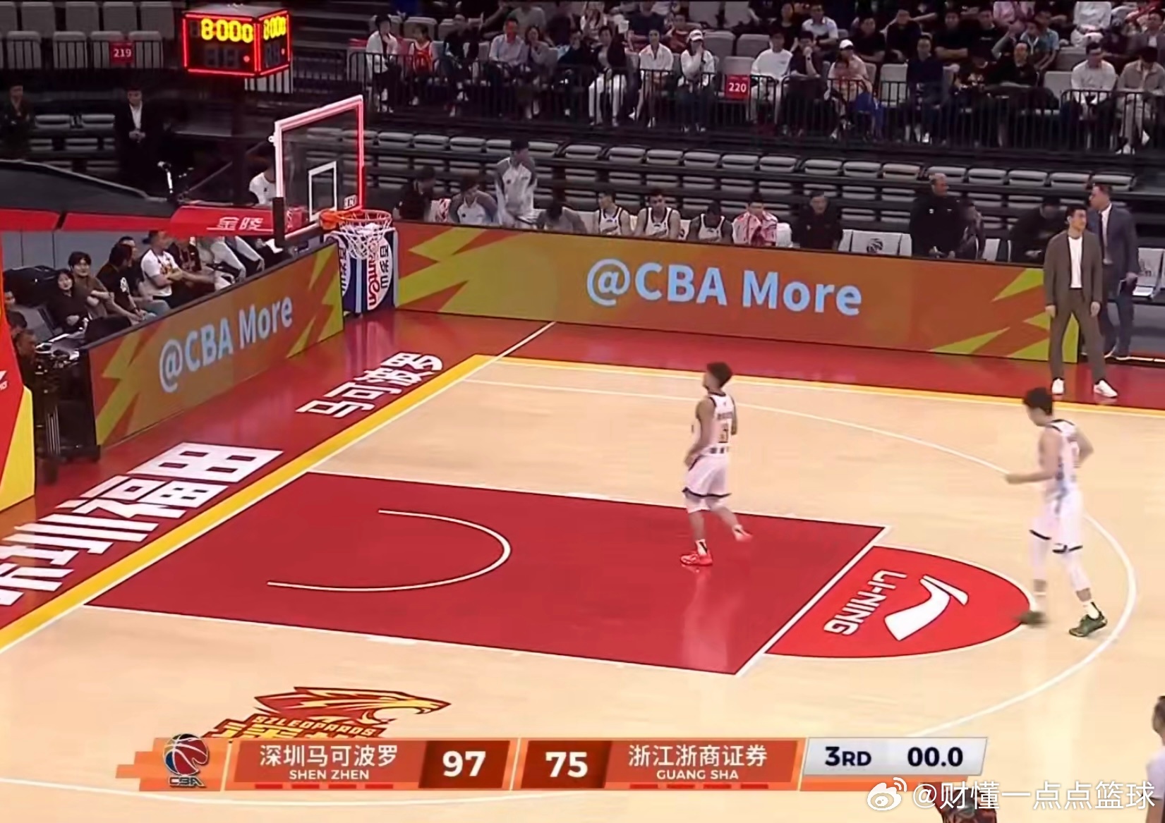 三节打完,深圳男篮97比75还是领先广厦男篮22分,应该没有悬念了!第三节广厦的赵嘉仁连续命中三分球一度将分差追到了15分,还好,关键时刻贺希宁命中一记三分球,史密斯继续超远三分续上了!深圳男篮vs广厦男篮