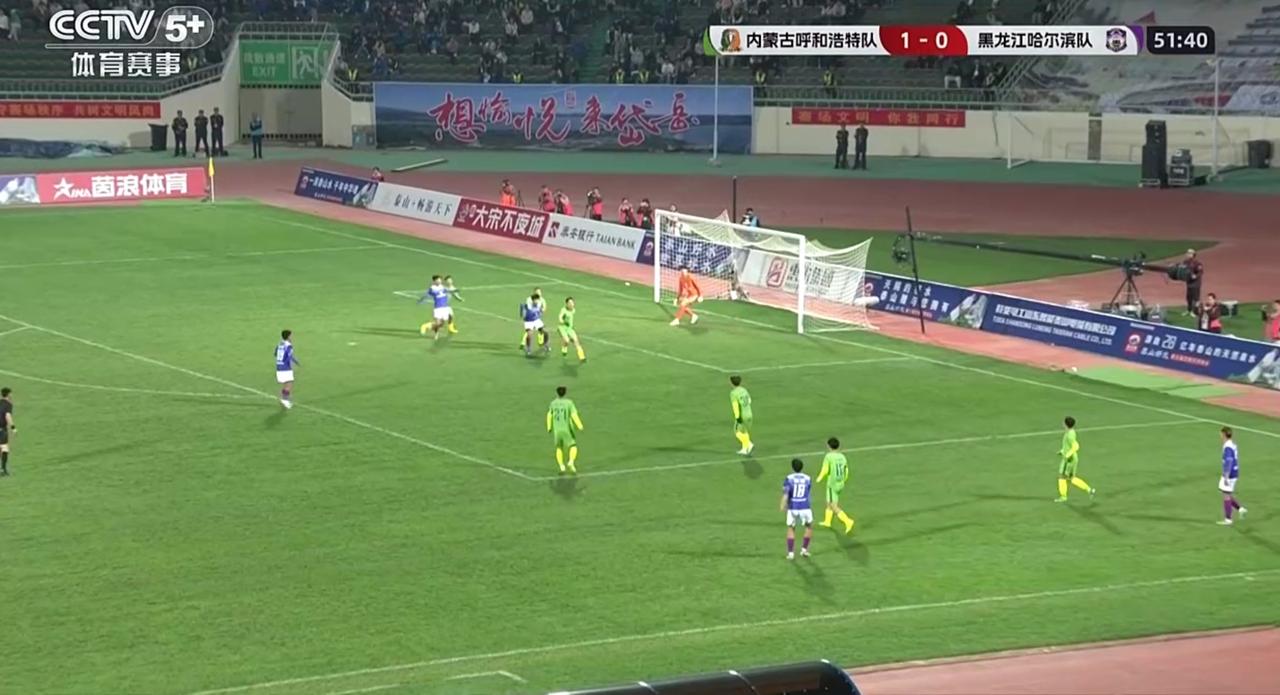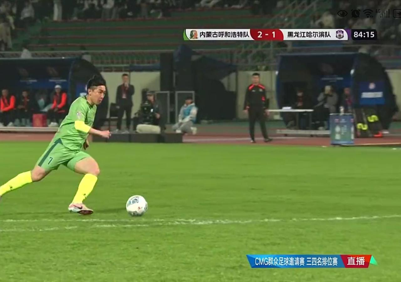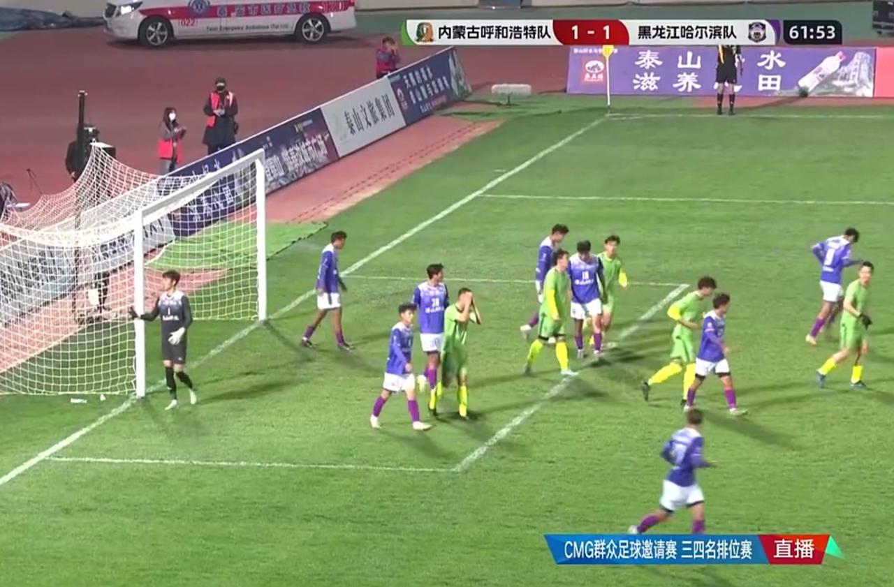 CMG群众足球邀请赛呼和浩特队2-1战胜哈尔滨队获得第三名 在北京时间4月2日21:30分刚刚结束的CMG群众足球锦标赛的三、四名排名赛的比赛中,上半场双方打的难解难分,都有射门,但是90分钟的常规时间里都没有进球。伤停补时阶段,内蒙古呼和浩特队获得前场任意球,直接射门打在横梁上弹出,呼和浩特队跟进的球员塞尔扎提补射破门,呼和浩特队1-0领先。下半场第52分钟,黑龙江哈尔滨队8号球员在禁区接到队友的助攻,高高跃起头球建功,扳平比分1-1平。第82分钟内蒙古呼和浩特队7号球员单刀球破门,呼和浩特队2-1领先。此后,黑龙江哈尔滨队加强进攻,在伤停补时阶段都没有放弃。最终双方均无进球。最终内蒙古呼和浩特队2-1战胜黑龙江哈尔滨队,排名第三,黑龙江哈尔滨队排名第四。安图县足球赛