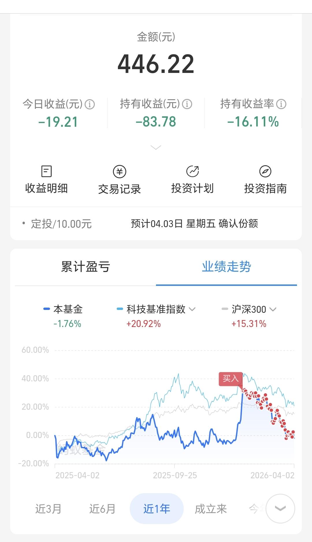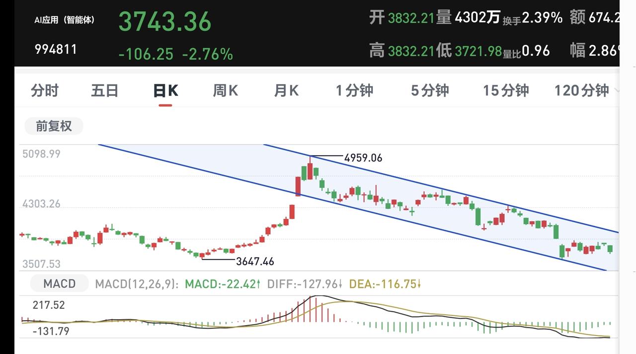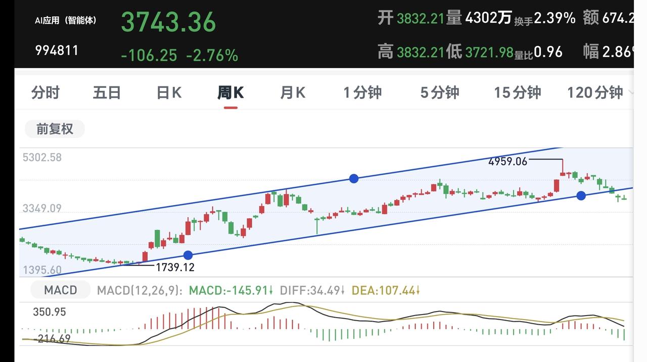 基金:我追高进场了这个板块 市场现在下跌中,英国下跌了0.72%,法国下跌了0.55%,德国下跌了0.61%,下跌幅度都不小。 香港市场今天也是下跌,恒生指数下跌了0.70%,国企指数下跌了0.56%,恒生科技指数下跌了1.63%,我们收盘以后,香港市场拉回了一些,缩小了下跌的幅度。 持有的基金净值已经全部更新,上涨幅度最大的三个板块是:海外互联网板块,创新药板块,大消费板块,下跌幅度最大的三个板块是:AI应用板块,芯片半导体板块,可控核聚变板块,净值整体亏损了5800元。 持有的基金中,今天晚上净值更新以后,下跌幅度最大的是AI应用板块基金,净值更新下跌了3.64%。 1:这只基金我持有446元,持有亏损83元,持有亏损率16.11%,累计收益也是83元,每天定投10块钱,见下面的截图5。 2:这只基金我是从近一年的最高点附近开始定投,当时没有带底仓进场,只是设置的每天10块钱,当时定投的目的是便于观察,所以,虽然现在持有亏损率达到了16.11%,但我一点都不担心,我可以分分钟把持有亏损率降为1%,见下面的截图6。 3:从近一年的走势看,我是在最高点附近进场,但从成立以来的走势看,我进场的位置并不是最高,自成立以来,这只基金下跌了32.88%,而我的持有亏损率只有16.11%,这样看我整体上进场的位置并不是很高,主要是通过定投把我的持有成本拉低了不少,见下面的截图7。 4:AI应用板块日线级别处于下跌通道中,距离下跌通道上下轨的空间差不多远,只要是保持在这个下跌通道中震荡,这个板块日线级别都是处于下跌趋势中,只要这个板块的下跌趋势不被改变,就不要考虑要不要进场,见下面的截图8。 5:AI应用板块周线级别处于上涨趋势破位中,这个板块上周下跌跌破了周线级别上涨通道的下轨线,本周是继续在上涨通道的下方震荡,长线持有的人需要注意风险,想进场的人也是参考日线级别下跌通道上轨线的突破,见下面的截图9。 追高进场不可怕,可怕的是高位重仓追高进场,我这个板块就是标准的追高进场,但这个板块不会对我造成伤害,这个板块扭亏为盈是大概率的事情,只要按照既定的操作策略来办,不挣钱是很难的。 近期如果下跌到了日线级别下跌通道下轨线附近,我就会加大定投的额度,把定投的额度调整为每天100块钱,近期如果上涨突破日线级别下跌通道的上轨线,我会手动进场,目标仓位50000块钱。 你觉得这样操作会亏钱吗?你觉得定投还需要选择位置吗?你觉得持有亏损率超过10%太可怕吗?一点都不可怕,可怕的是你在进厂的时候就没有规划,过程当中是随意的操作,高位的时候加大仓位,低位的时候割肉离场,这些才是亏损的根源。 我写文章请大家过来欣赏,许多人看了以后,什么痕迹都没有留下,走的时候也是一声不吭,连一个点赞,连一句评论都不会留下,走的是那样的无声无息,这样的人是不地道的,没有做人最起码的准则,我不愿意与这样的人交朋友,这样的人,下次最好也不要来看我的文章,这里不欢迎你。