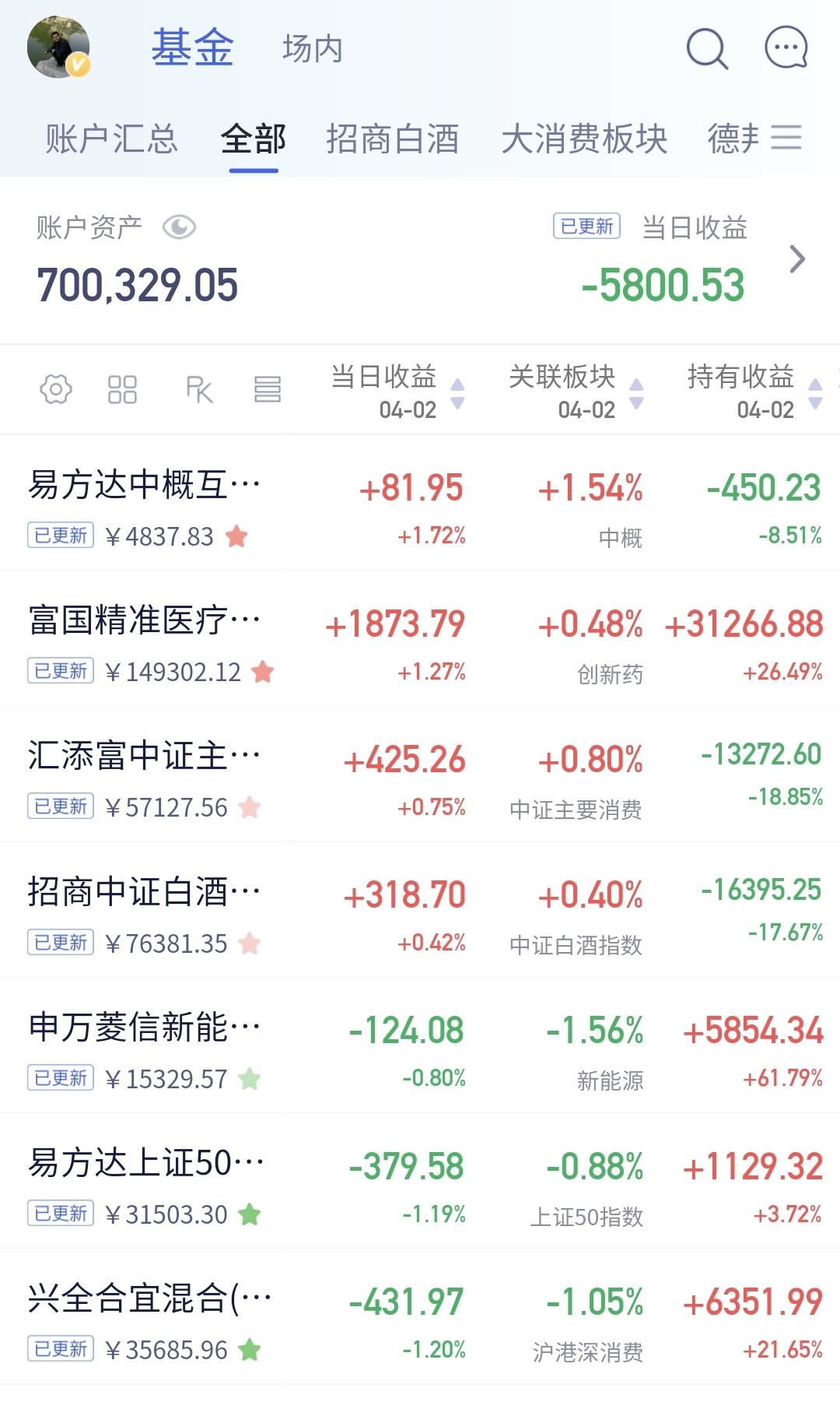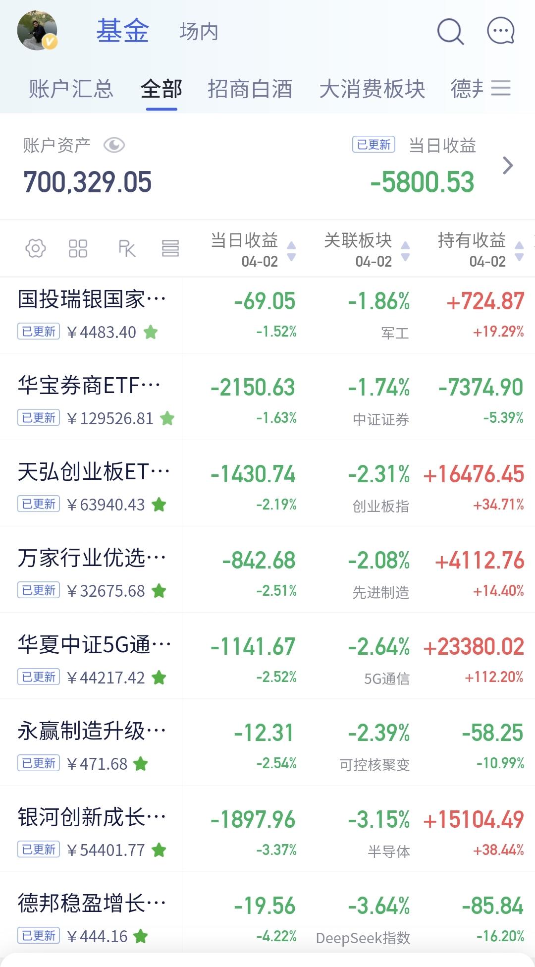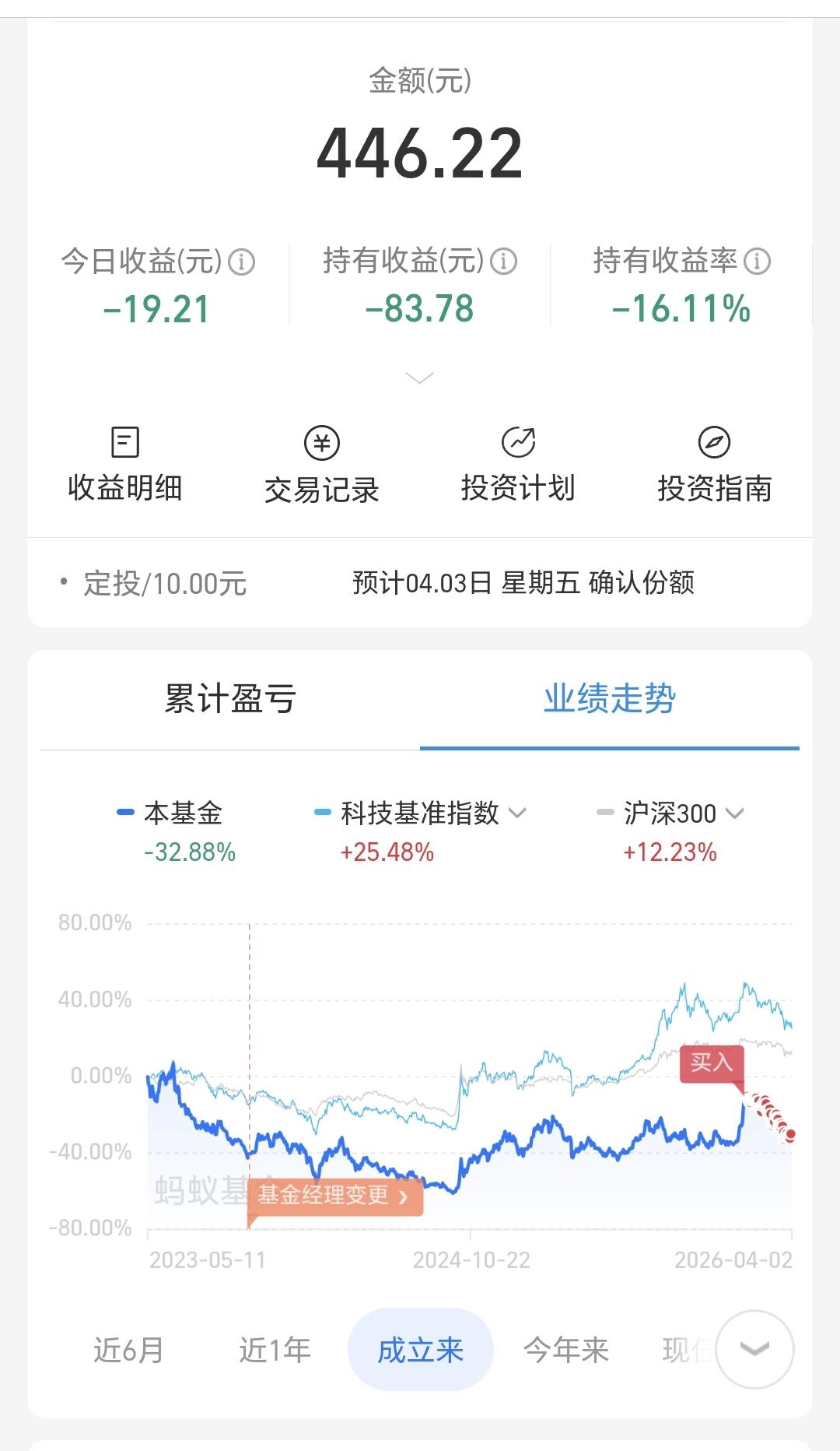 基金:我追高进场了这个板块 市场现在下跌中,英国下跌了0.72%,法国下跌了0.55%,德国下跌了0.61%,下跌幅度都不小。 香港市场今天也是下跌,恒生指数下跌了0.70%,国企指数下跌了0.56%,恒生科技指数下跌了1.63%,我们收盘以后,香港市场拉回了一些,缩小了下跌的幅度。 持有的基金净值已经全部更新,上涨幅度最大的三个板块是:海外互联网板块,创新药板块,大消费板块,下跌幅度最大的三个板块是:AI应用板块,芯片半导体板块,可控核聚变板块,净值整体亏损了5800元。 持有的基金中,今天晚上净值更新以后,下跌幅度最大的是AI应用板块基金,净值更新下跌了3.64%。 1:这只基金我持有446元,持有亏损83元,持有亏损率16.11%,累计收益也是83元,每天定投10块钱,见下面的截图5。 2:这只基金我是从近一年的最高点附近开始定投,当时没有带底仓进场,只是设置的每天10块钱,当时定投的目的是便于观察,所以,虽然现在持有亏损率达到了16.11%,但我一点都不担心,我可以分分钟把持有亏损率降为1%,见下面的截图6。 3:从近一年的走势看,我是在最高点附近进场,但从成立以来的走势看,我进场的位置并不是最高,自成立以来,这只基金下跌了32.88%,而我的持有亏损率只有16.11%,这样看我整体上进场的位置并不是很高,主要是通过定投把我的持有成本拉低了不少,见下面的截图7。 4:AI应用板块日线级别处于下跌通道中,距离下跌通道上下轨的空间差不多远,只要是保持在这个下跌通道中震荡,这个板块日线级别都是处于下跌趋势中,只要这个板块的下跌趋势不被改变,就不要考虑要不要进场,见下面的截图8。 5:AI应用板块周线级别处于上涨趋势破位中,这个板块上周下跌跌破了周线级别上涨通道的下轨线,本周是继续在上涨通道的下方震荡,长线持有的人需要注意风险,想进场的人也是参考日线级别下跌通道上轨线的突破,见下面的截图9。 追高进场不可怕,可怕的是高位重仓追高进场,我这个板块就是标准的追高进场,但这个板块不会对我造成伤害,这个板块扭亏为盈是大概率的事情,只要按照既定的操作策略来办,不挣钱是很难的。 近期如果下跌到了日线级别下跌通道下轨线附近,我就会加大定投的额度,把定投的额度调整为每天100块钱,近期如果上涨突破日线级别下跌通道的上轨线,我会手动进场,目标仓位50000块钱。 你觉得这样操作会亏钱吗?你觉得定投还需要选择位置吗?你觉得持有亏损率超过10%太可怕吗?一点都不可怕,可怕的是你在进厂的时候就没有规划,过程当中是随意的操作,高位的时候加大仓位,低位的时候割肉离场,这些才是亏损的根源。 我写文章请大家过来欣赏,许多人看了以后,什么痕迹都没有留下,走的时候也是一声不吭,连一个点赞,连一句评论都不会留下,走的是那样的无声无息,这样的人是不地道的,没有做人最起码的准则,我不愿意与这样的人交朋友,这样的人,下次最好也不要来看我的文章,这里不欢迎你。