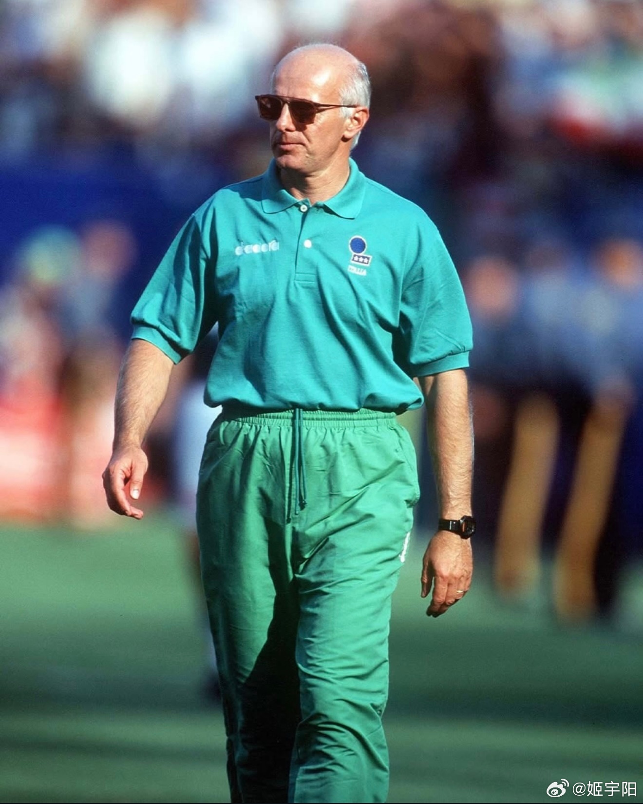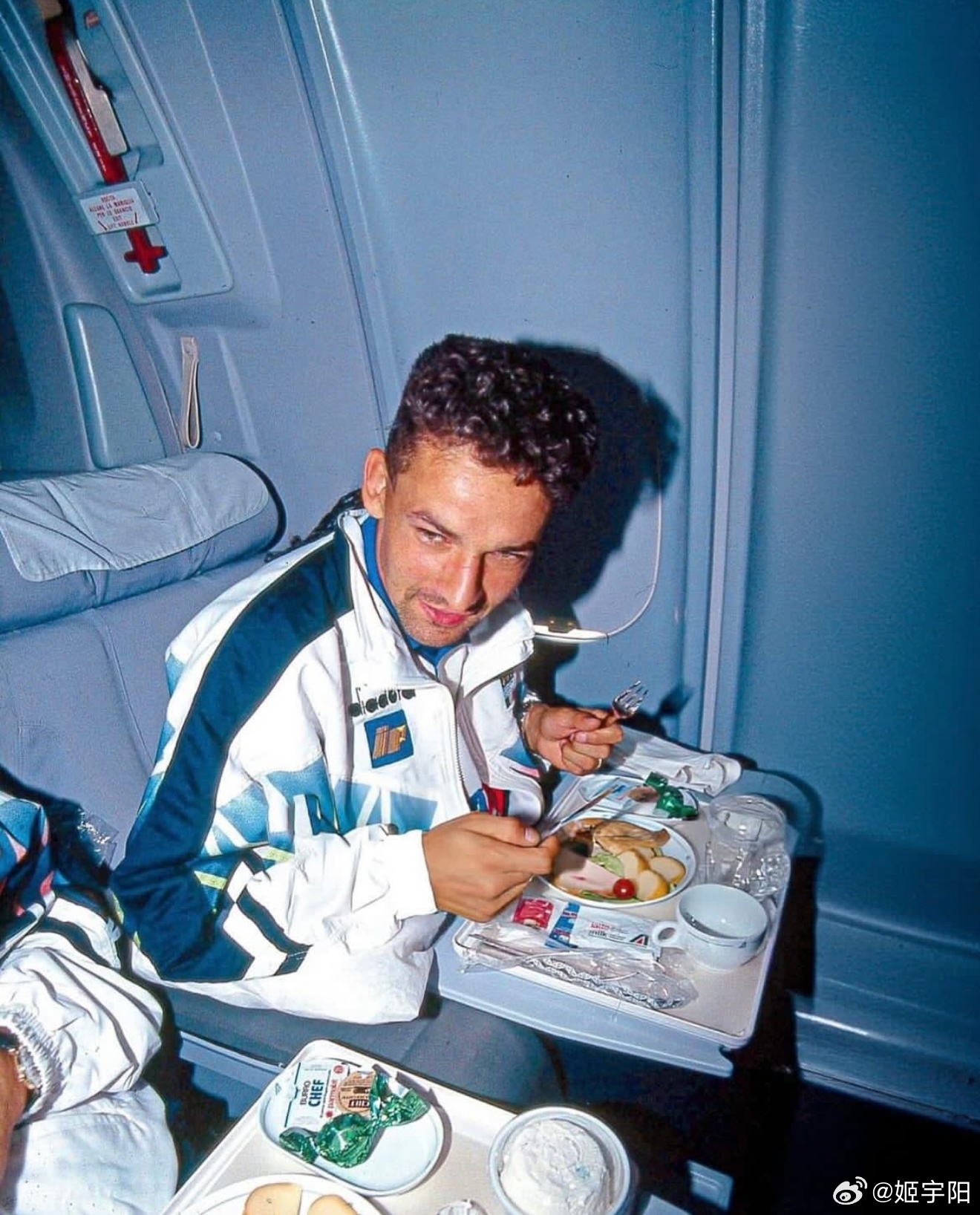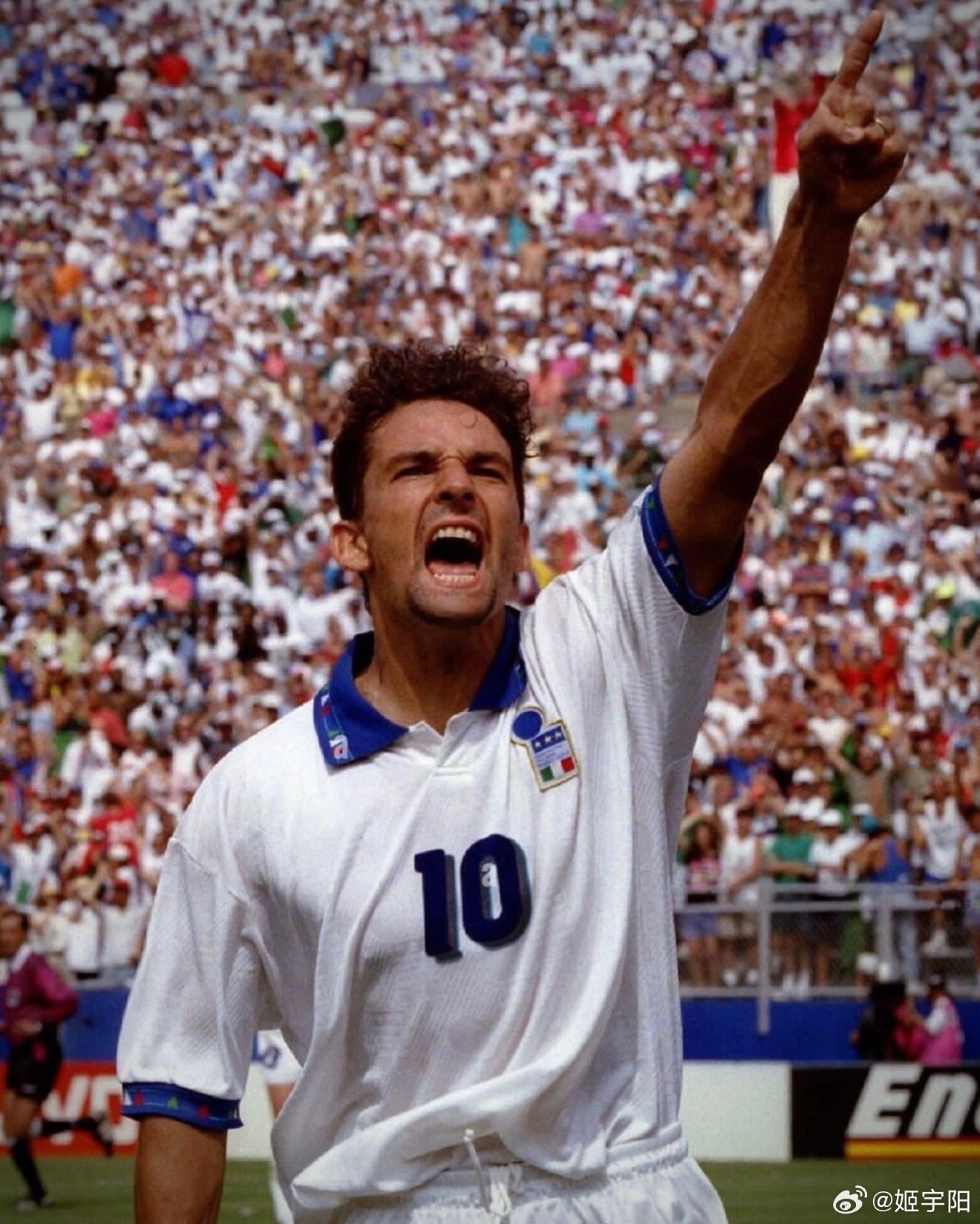 蓝色军团的【美国往事】自 1994 年之后,世界杯时隔 32 年再次回到美国。但蓝色军团意大利队却未能和世界杯一起故地重游。我们只能通过一组珍贵的旧照,回忆意大利上一次在美国参加世界杯的一些难忘瞬间。1994 年那支意大利队真的是人才济济,除了如日中天的球星巴乔、马尔蒂尼等等之外,好几位日后成为名帅的角色,当时也在那支参加世界杯的意大利队里。比如图三里这个背影,就是那届世界杯意大利 15 号孔蒂,后来作为主教练执教过尤文图斯、意大利国家队以及切尔西等队。目前是那不勒斯主教练,也是历史上首位率三支不同球队夺得意甲冠军的教练。图 四 中间这位,正是 现任巴西队主帅安切洛蒂。安切洛蒂之前也是意大利国脚 ,1994 年世界杯,刚刚退役的他以主教练萨基的助理教练身份,跟随意大利队一起征战了那届世界杯。图 六 这位就更不用介绍了,熟悉的曼奇尼。同样作为主教练带领意大利队 2021 年登顶欧洲。目前是在执教卡塔尔球队阿尔萨德。在球员层面,罗伯特·巴乔无疑是那届意大利队最耀眼的球星。1994 年世界杯之前, 巴乔是以 1993 年度世界足球先生和金球奖(欧洲足球先生)双料得主的身份,跟随意大利队一起来到了美国参加世界杯。巴乔当时在足坛的威望,通过两大奖项的得票数就可见一斑。 1993 金球奖(Ballon d'Or),巴乔得分是 142 分,排第 2 的博格坎普是 83 分,排第 3 的坎通纳是 34 分。1993 世界足球先生(FIFA World Player)票数,巴乔是 152 分,第 2 名罗马里奥是 84 分,排第三的博格坎普是 58 分。1994年美国世界杯,巴乔淘汰赛阶段独进5球,率队杀入决赛,但决赛点球射失,意大利憾负巴西。罗伯特·巴乔是唯一一位三届世界杯都有进球的意大利球员。4 年后的 1998年法国世界杯,巴乔代表意大利参加最后一届大赛。贡献3球2助攻,帮助意大利打进八强,点球大战不敌法国无缘四强。1994 年世界杯决赛,巴乔在和巴西最后点球大战中踢飞点球的一幕,成为了世界杯历史上最让人心碎的场景之一。而这一幕画面,也把忧郁王子的称号与他彻底绑定。意大利连续3届无缘世界杯2026美加墨世界杯