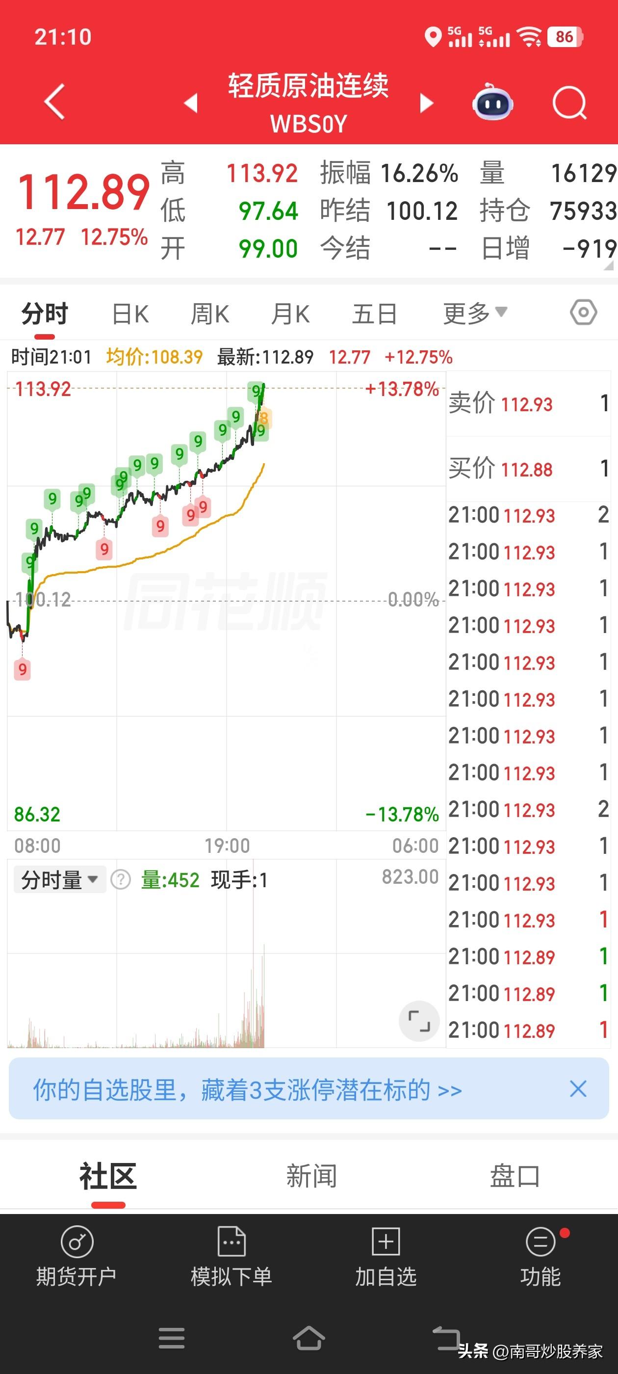 晚上9.10分,石油暴涨至前高附近,贵金属暴跌…… 我觉得挺好的,既然有人不想好,要全世界搞破坏,应该在美股开盘之前让他们感受一下股市暴跌,让资本家绞尽脑汁吧。毕竟白天我们也是受害者。看看这一轮搞破坏的始作俑者,能不能把4月份挺过去。看一看美国人民的幸福能不能掌握在自己手中。