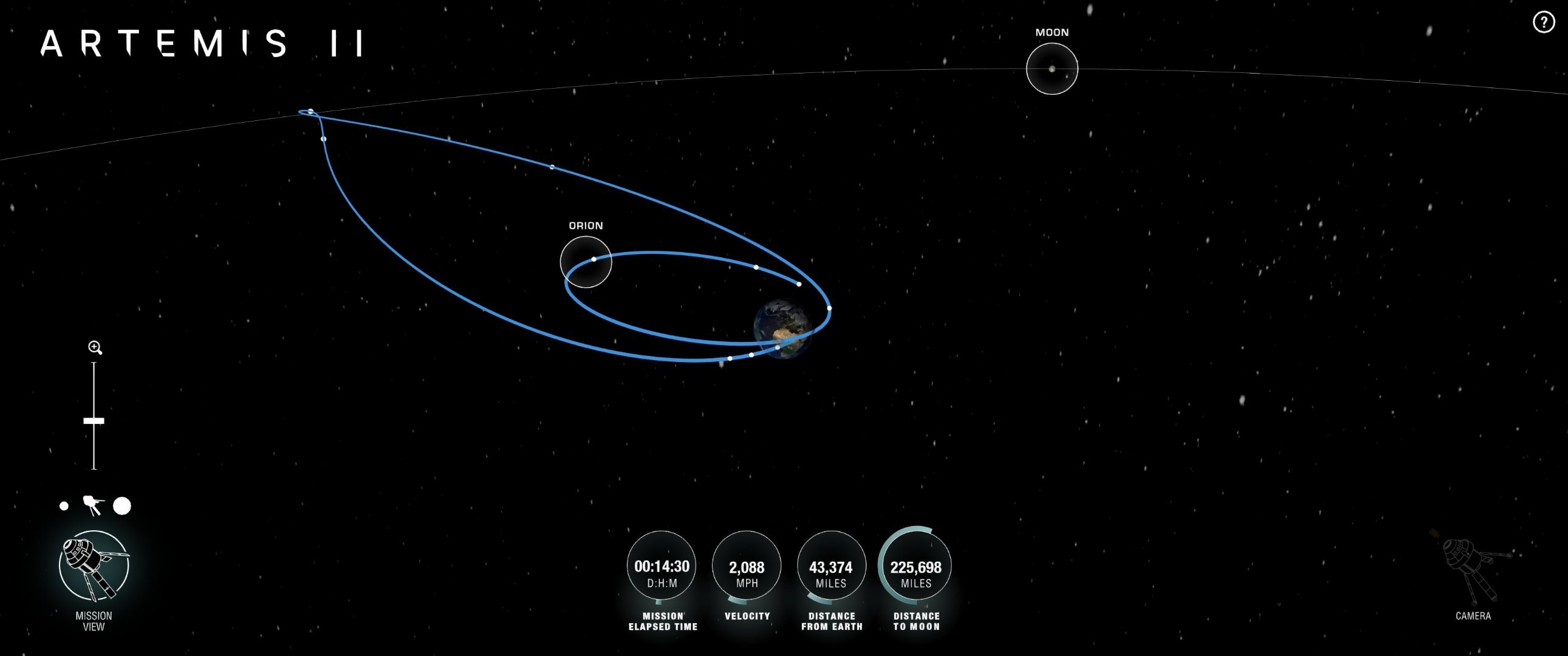 阿尔忒弥斯2号 阿尔忒弥斯2号宇航员刚刚顺利完成了近地点轨道抬升。下一步将地月转