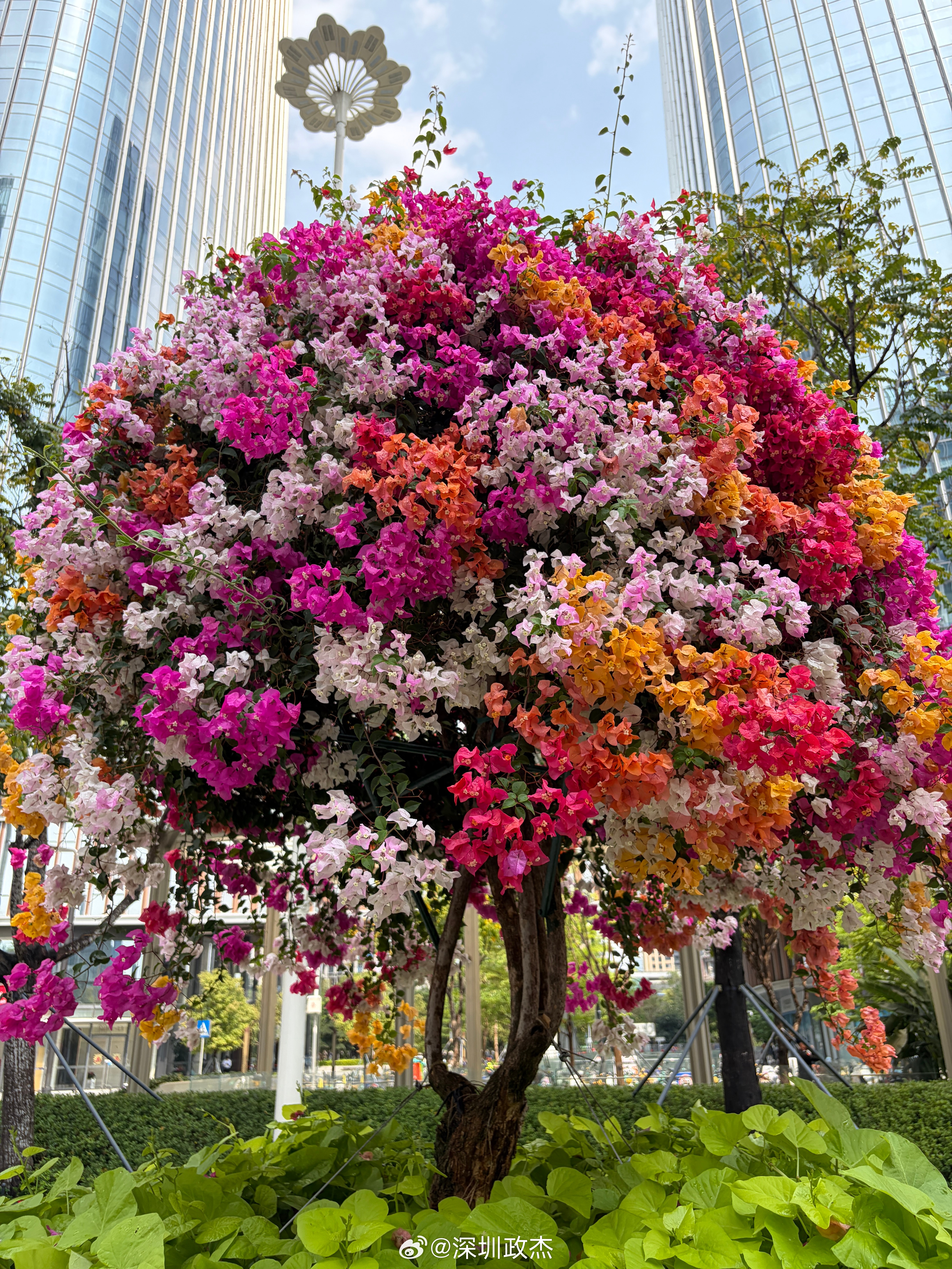 有朋友问为什么这个三角梅这么多种颜色,人工嫁接的,从而实现一树多色,确实挺好看。 深圳·前海大厦-东广场