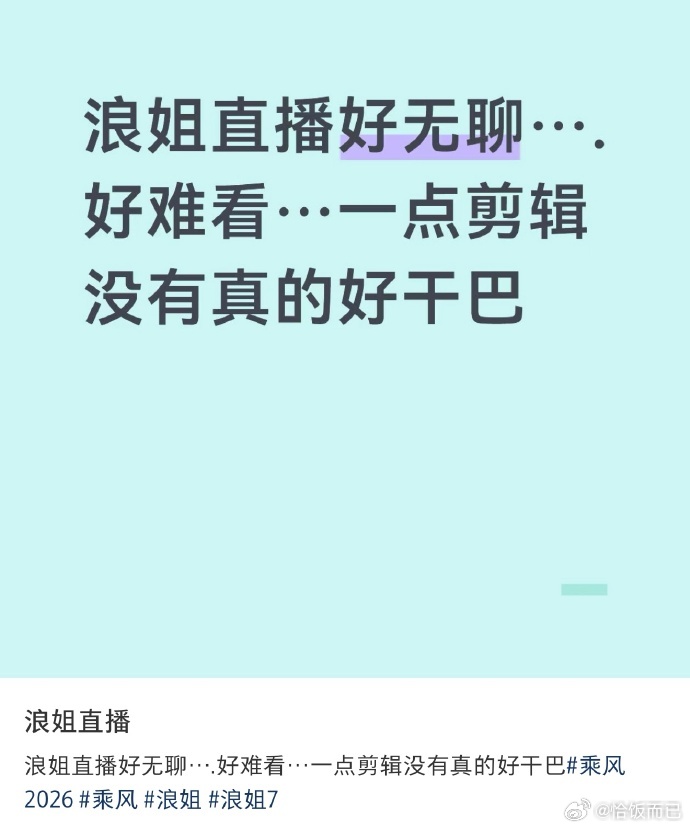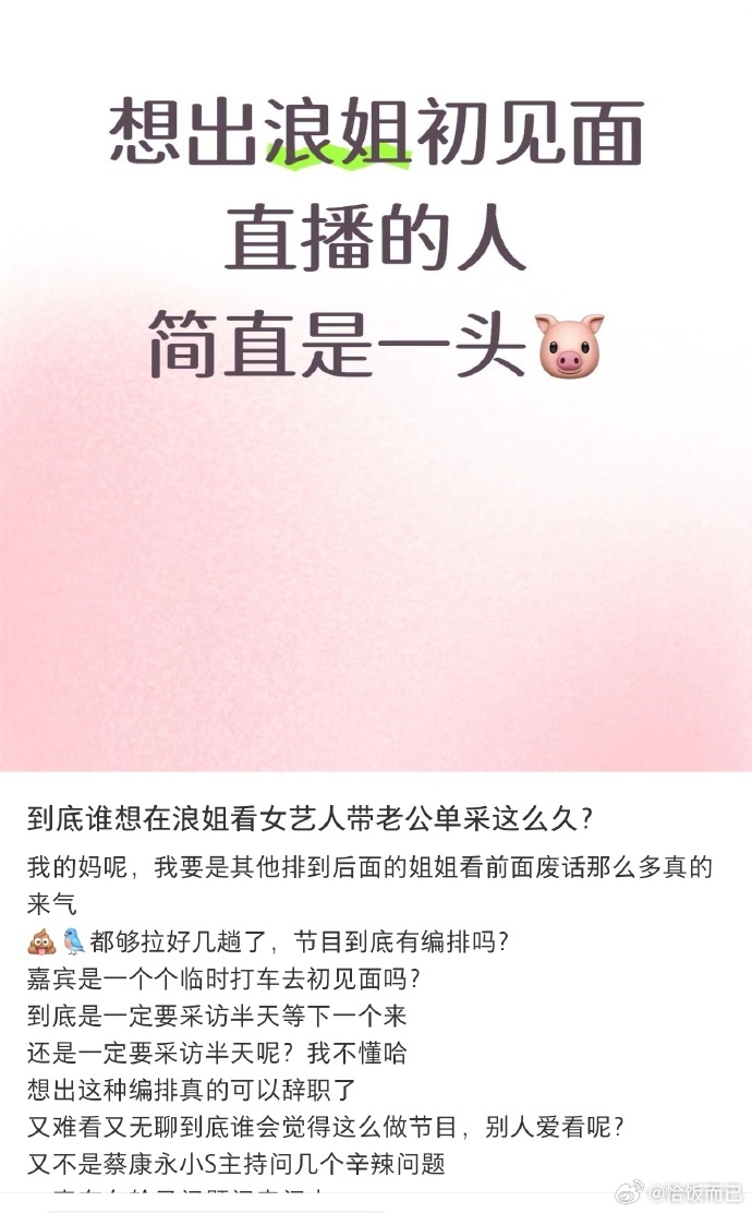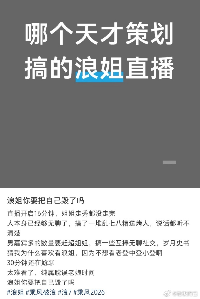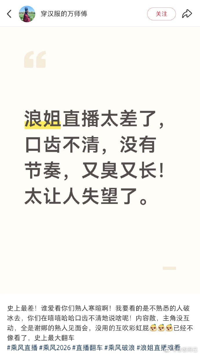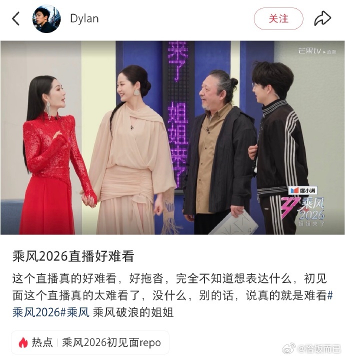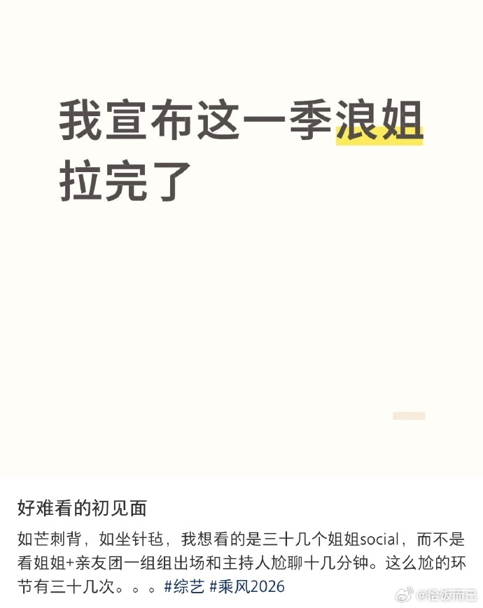 乘风初见面直播浪姐今年这个初见面算是毁了,各个平台的反馈都是“吵”“拖沓”。没有