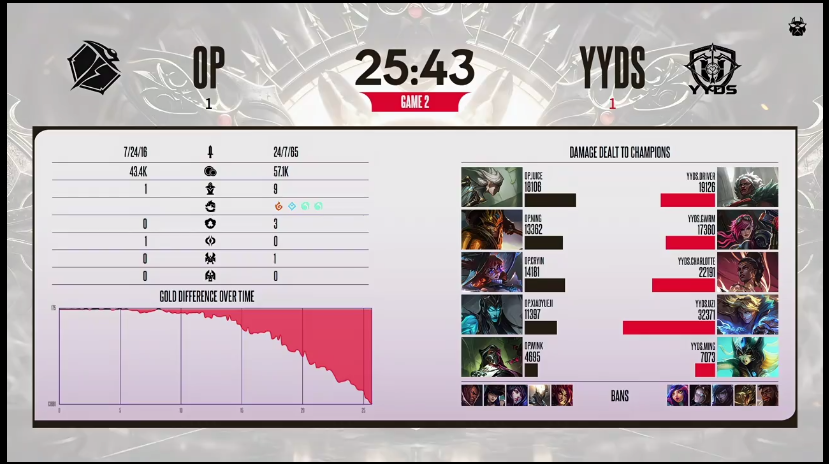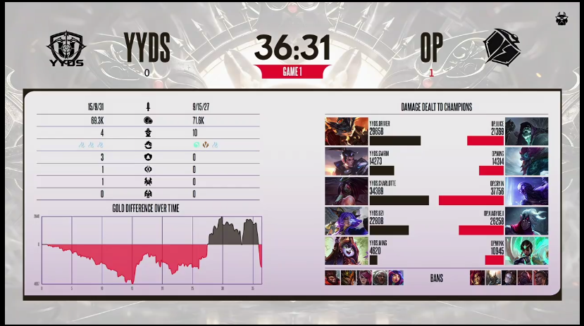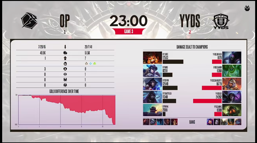 虎扑04月02日讯今日Uzi杯OP对阵YYDS的系列赛已结束,YYDS通过五局鏖战,击败OP挺进Uzi杯决赛。