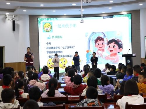 在预防措施讲解环节,张大夫强调了“预防为主”的防控理念,着重从养成健康的生活习惯、保持室内空气流通、适度开展体育锻炼、合理均衡膳食、生病及时就医休息五大方面给出了全面实用的防控方法。现场示范七步洗手法,教导学生正确的洗手步骤,叮嘱学生勤洗手、室内常通风、不随地吐痰、不乱扔垃圾,养成良好的个人卫生习惯。提醒学生合理膳食、多喝温水、积极参加体育锻炼,保证充足睡眠,增强自身免疫力。同时告知学生,若出现发热、呕吐、皮疹等不适症状,要第一时间告知老师和家长,及时就医,不带病上学、不隐瞒病情,从源头阻断传染病传播。