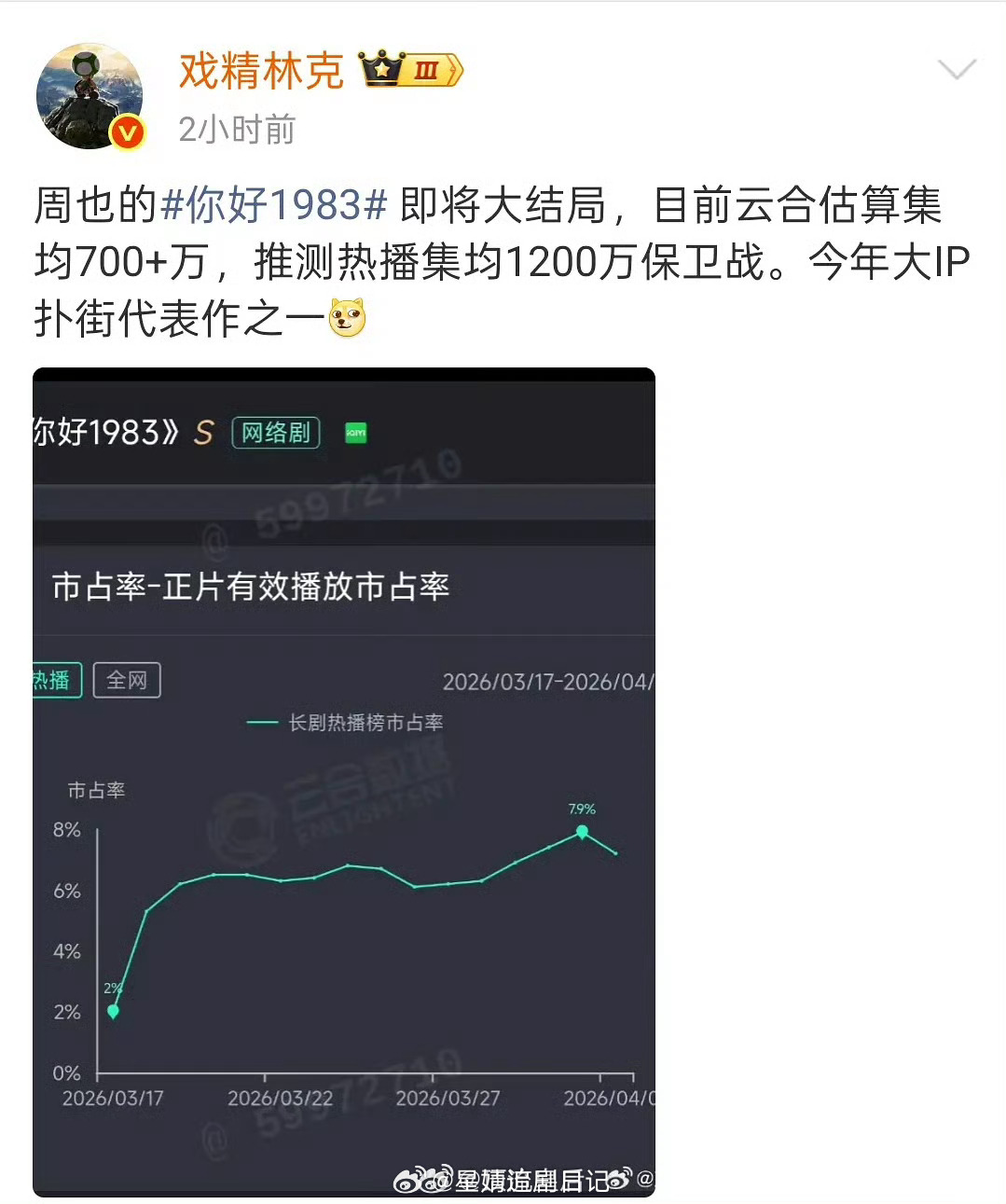 被粉丝投稿根据数据博主总结扑的毫无声量的剧你好1983 冬去春来 危险关系