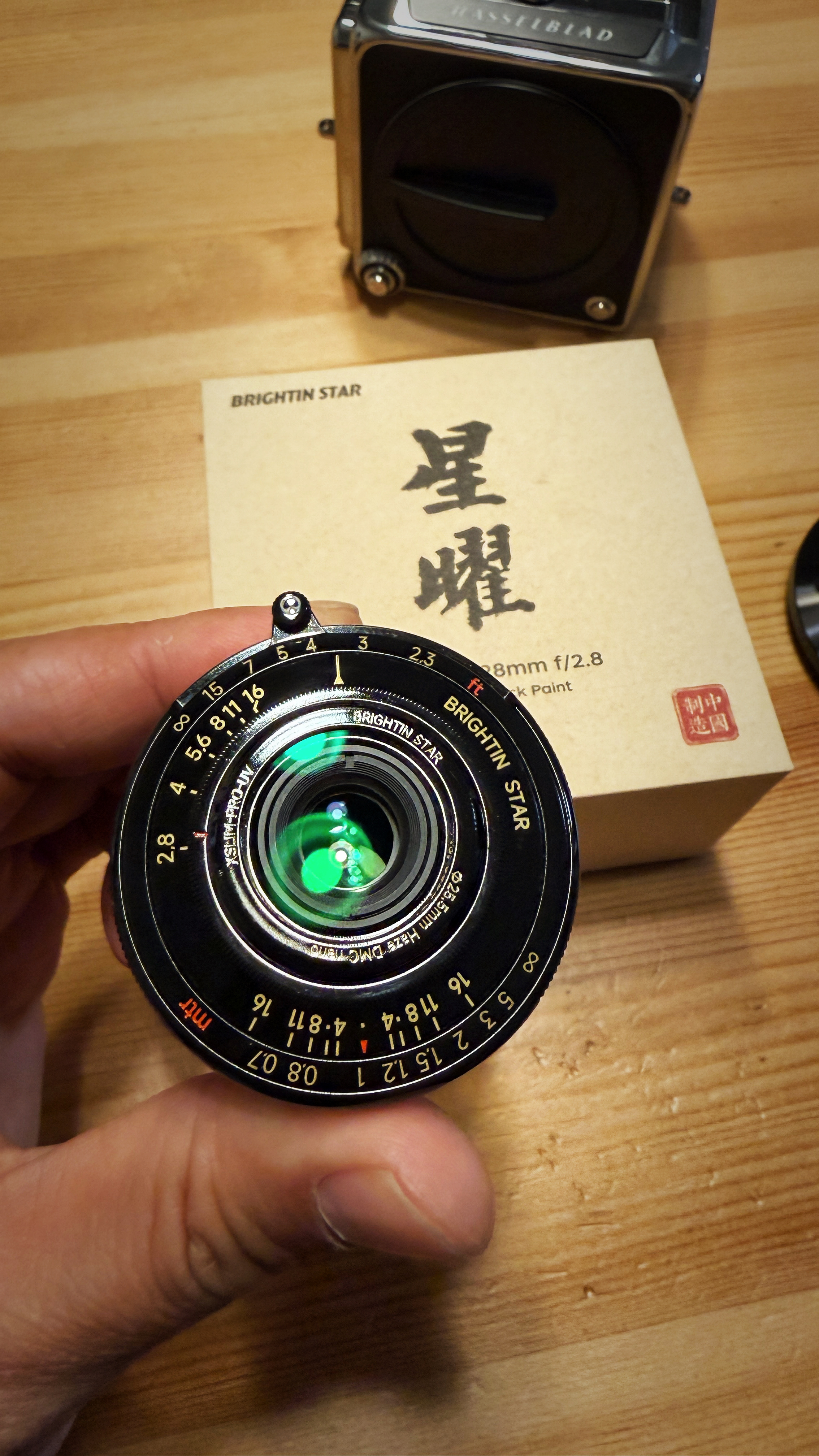 给哈苏配了个超小的手动镜头,星耀28mm,f/2.8,M卡口,非常精美,外加薄如鼻涕泡的UV,也就1mm厚,装上就不用按镜头盖了,实际也没法装。还需要个TTARTISAN转接环,颜值瞬间变样孟庆嘉的好物
