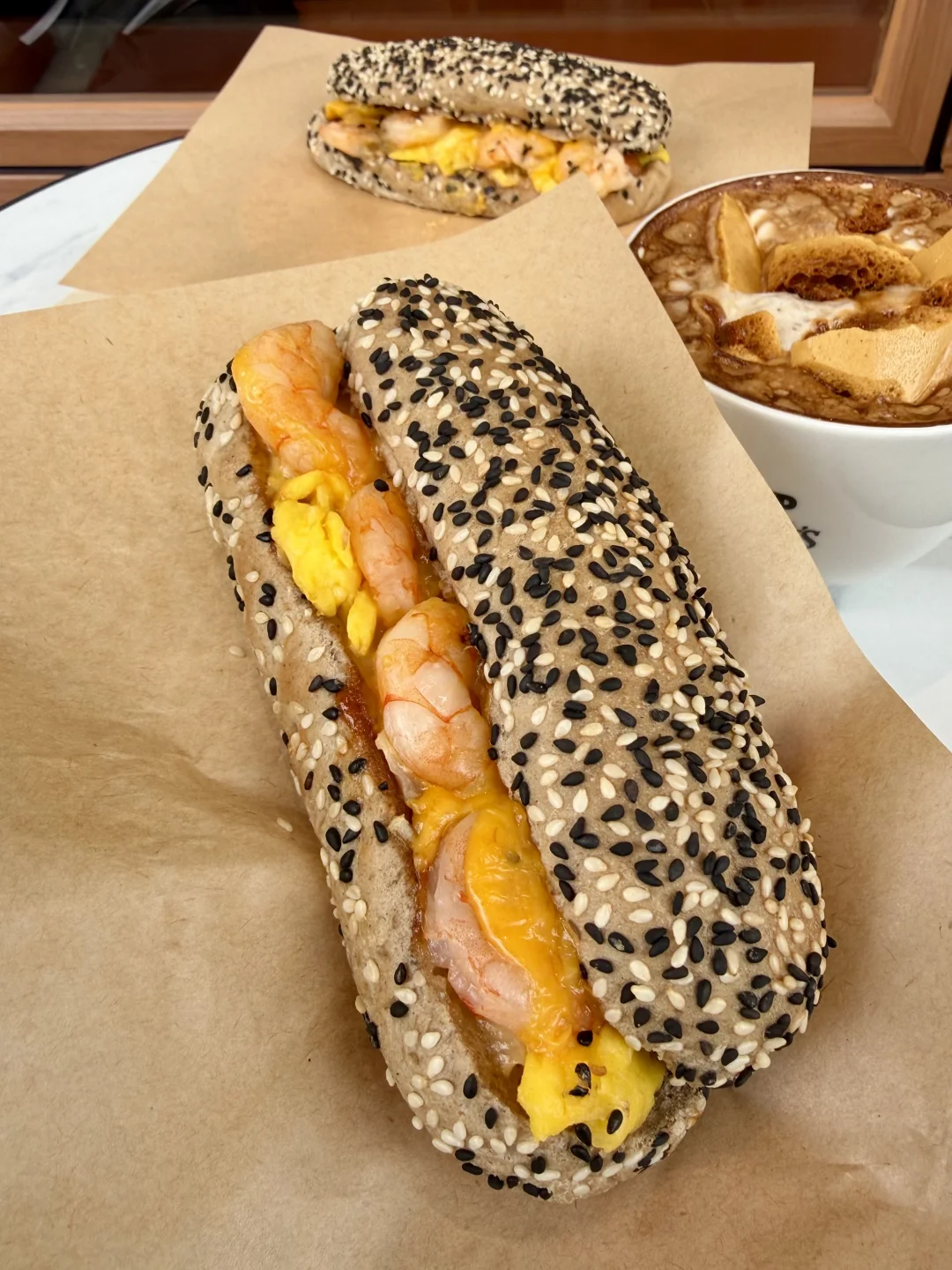 皮爷烘焙新品太惊艳了!他们家不止咖啡好喝,烘焙直接开挂💥 都给我锁死这个罗望子芝士虾仁潜艇堡!一整个丰富的食材与风味的搭配!里面整颗Q弹的虾仁🍤+滑嫩的炒蛋🥚口感真的很美妙!搭配了很独特的罗望子酱,从第一口到最后一口都是酸甜清香的包裹!真的不腻不腻!!分量足吃得饱,口感好无负担~ 搭配一杯焦糖烧拿铁☕️,在皮爷门店里沉浸式享受慢食午餐,手工烘焙新鲜出品,颜值与饱腹度双在线,打工人午餐闭眼冲不亏!😍😍