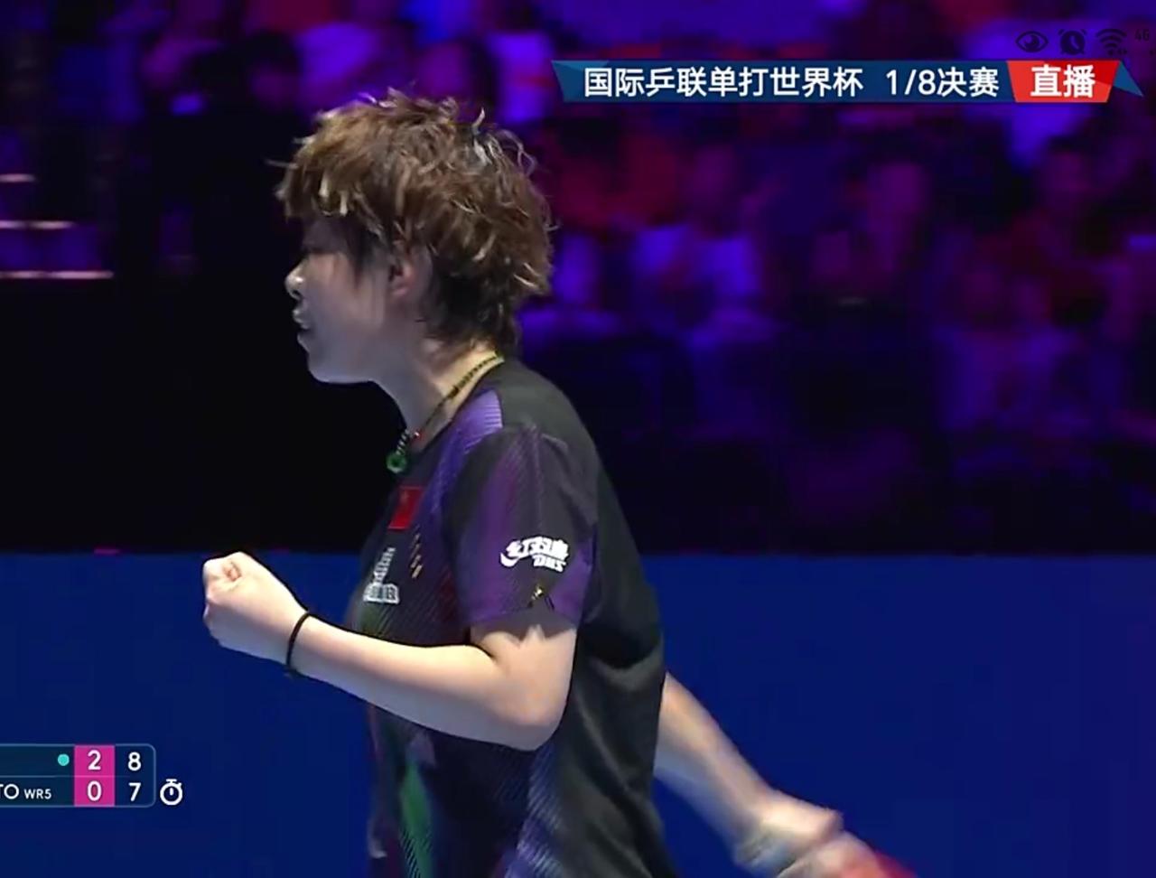 国际乒联单打世界杯女单八强争夺战:王艺迪4-1张本美和晋级八强 在刚刚结束的国际乒联单打世界杯女单八分之一决赛中,中国名将王艺迪迎战日本球员张本美和。王艺迪状态火热,4-1完胜张本美和,晋级女单八强。比赛过程如下: 第一局,开局阶段王艺迪取得2:0的领先。张本美和把比分追到3平。王艺迪连得7分,10:3拿到局点,张本美和挽救4个局点,王艺迪11:7先拔头筹,取得开门红。 第二局,双方打的难解难分,比分咬的很紧。比分从1平、2平、来到3平,张本美和连得两分5:3领先。王艺迪把比分追到5平,反超比分7:5领先。张本美和把比分追到7平,双方战成8平,王艺迪10:8拿到局点,张本美和挽救一个局点。王艺迪11:9拿下第二局,局分2-0领先。 第三局,王艺迪开局阶段3:1领先,张本美和把比分追到4平,双方战成5平、6平、7平。王艺迪10:8拿到局点,张本美和挽救两个局点把比分追到10:10平,王艺迪连得两分,12:10拿下此局,局分3-0领先。 第四局,开局阶段王艺迪取得4-0领先。张本美和把比分追到6平,双方战成7平、8平、9平,张本美和连得两分11:9扳回一局。把局分追到1-3。 第五局,开局阶段张本美和取得3:1的领先,王艺迪连续得分,反超比分7:4领先。张本美和连得两分把比分追到6:7,王艺迪连得三分10:6拿到赛点。张本美和挽救两个赛点。王艺迪11:8收割比赛。最终,王艺迪4-1战胜张本美和,晋级女单八强。张本乒乓球 王艺迪自拍 世乒单打世界杯
