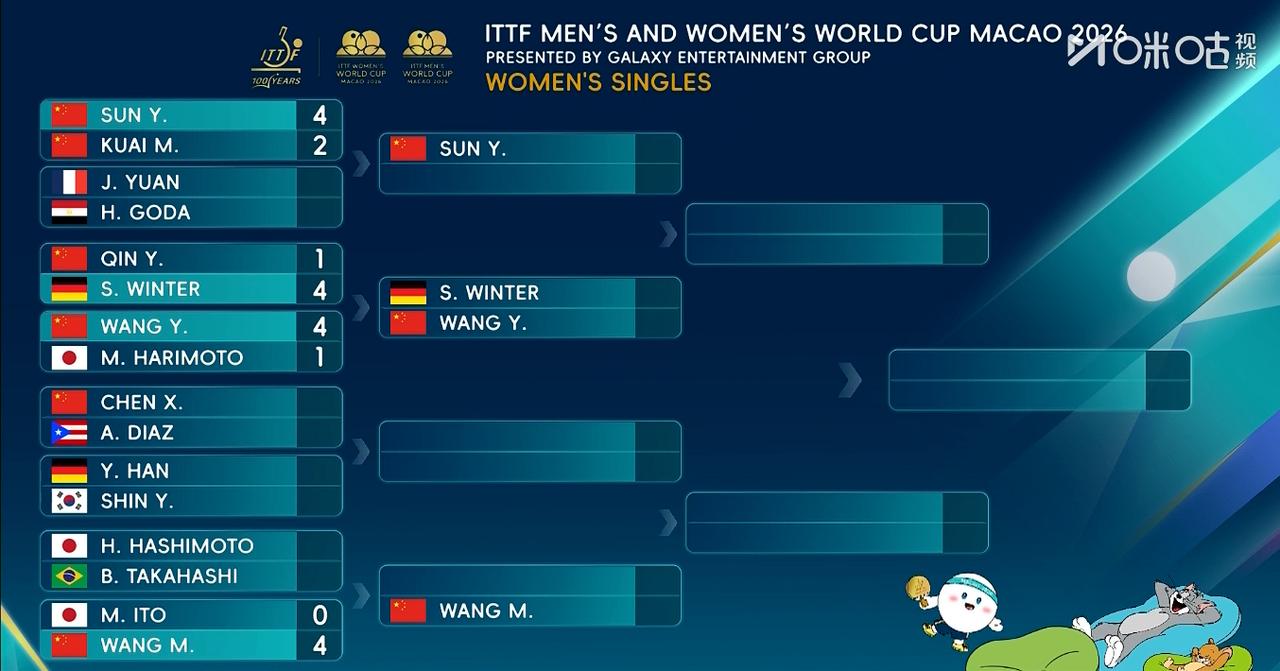 王艺迪这回真不恐日了!澳门世界杯女单 1/8 决赛,王艺迪 4-1 战胜张本美和,强势晋级八强! 五局比分:11-7、11-9、12-10、9-11、11-8。 面对近期状态火热的张本美和,大迪今晚打得还是比较沉稳,有耐心的! 连下三局,压制对手的近台快攻。虽然第四局被扳回一局,但第五局迅速稳住,牢牢掌控节奏,干净利落拿下胜利。 这不仅是一场胜利,更是心理上的彻底突破--面对张本美和,王艺迪已拿下四连胜,完全掌握主动权。 题外话,今晚这场比赛,发现大迪的发型更好看了,新的一年,换个发型,好运都来了! 下一轮(1/4 决赛):王艺迪 🇨🇳 VS 莎宾・温特 🇩🇪 上一站新加坡大满贯,王艺迪 2-4 不敌温特,遭遇生涯首败。 温特的反手防弧胶打法非常克制力量型选手,能有效 “卸掉” 旋转,让大迪的进攻威力大减。以往的交手,虽然能赢下,也是打的很胶灼,几乎是险胜。 这次澳门再相遇,期待王艺迪能赢回来!