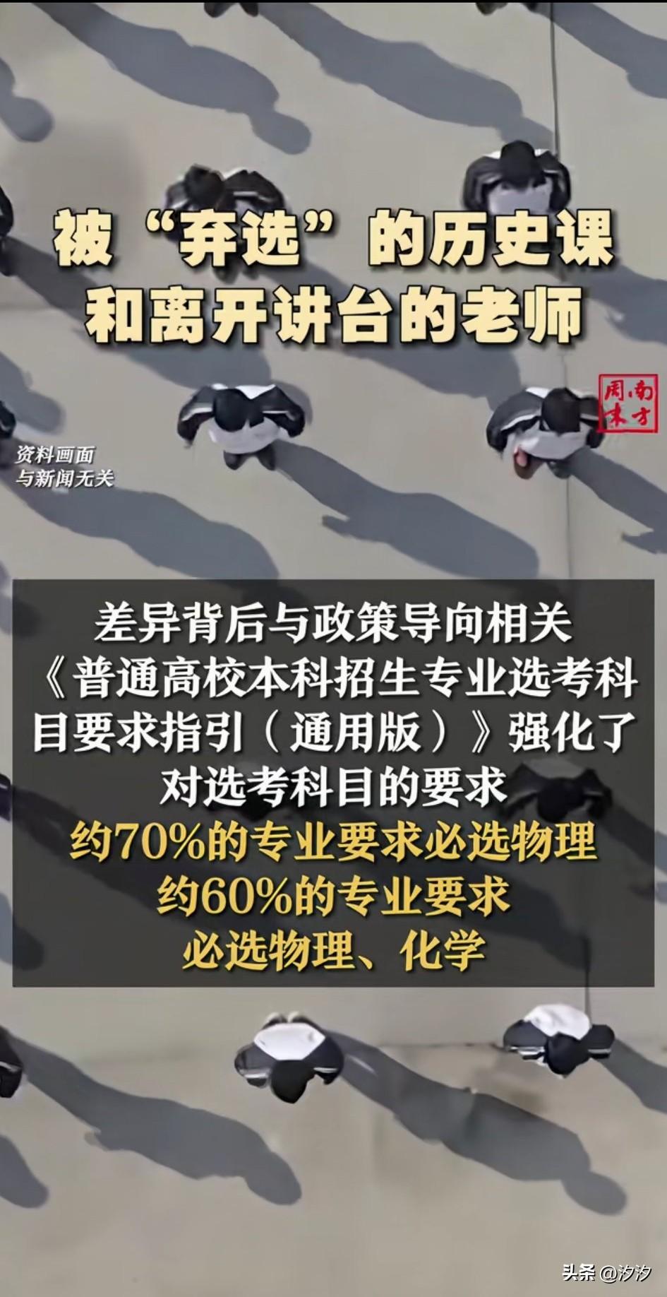 作为第五批实施新高考的省份, 河南也开始实施了3+1+2的模式,选课制度,没想到历史直接被抛弃了, 很多学生根本不选历史, 因为大家都觉得历史没有用, 学了以后考本科很难, 导致很多历史老师都失业了, 有些历史老师半年都没有上过课, 很多都待在办公室做行政工作, 有些无奈,离开了教室的舞台, 老外都在疯狂学中国历史, 国内的学生都疯狂摒弃了历史, 这不得不说是个讽刺, 如果一个国家的历史都没有人学了, 那将来这样的文化传承都断了, 很多媒体纷纷开始报道此事, 想要引起大家的重视, 还呼吁大家不要只为了经济利益考虑, 历史也是值得学习的科目, 但现实却很扎心, 重点大学的历史专业都缩减招生了, 因为就业真的不好, 就业导致了学习的人更加的少了, 从此恶性循环下去, 真的有可能文化断层, 大家对于高考很多学生弃选历史这一课怎么看? 河南高考3+4 河南高考困境 历史高考必选