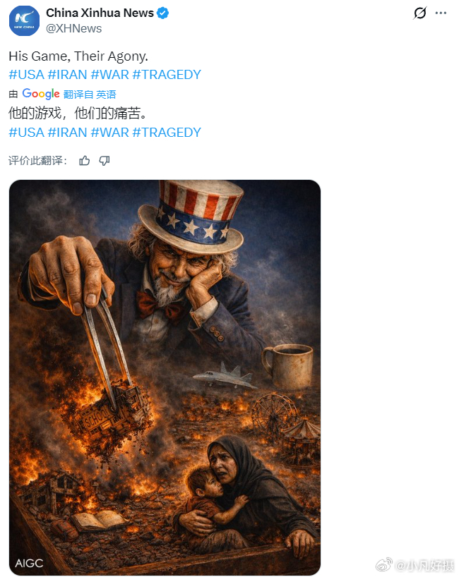 新华社海外版:His Game, Their Agony.(他的游戏,他们的痛苦。)美伊以冲突美国头大了伊朗袭击美军隐秘据点致37人死亡黄媒不会说的真相