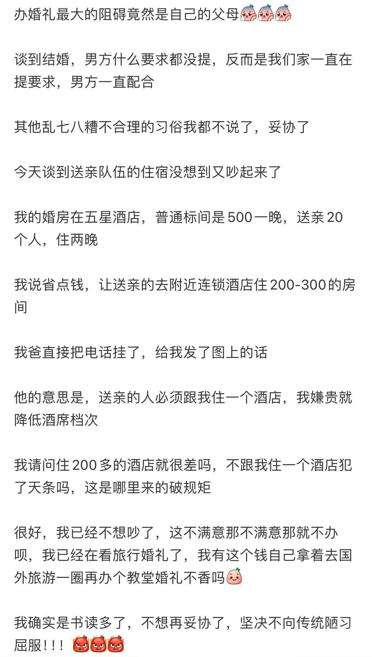 办婚礼最大的阻碍竟然是自己的父母 婚礼还有一个月酒店说办不了