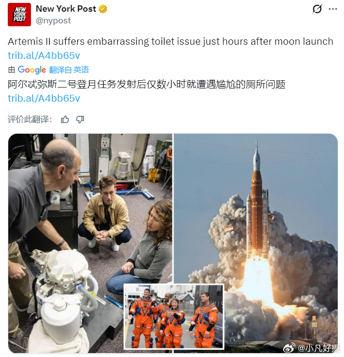 美国NASA“猎户座”飞船搭载4名宇航员发射升空,将他们送往月球轨道。但数小时后,美国载人绕月飞船厕所坏了 。“阿尔忒弥斯二号”计划至今已耗费930亿美元。海外新鲜事黄媒不会说的真相