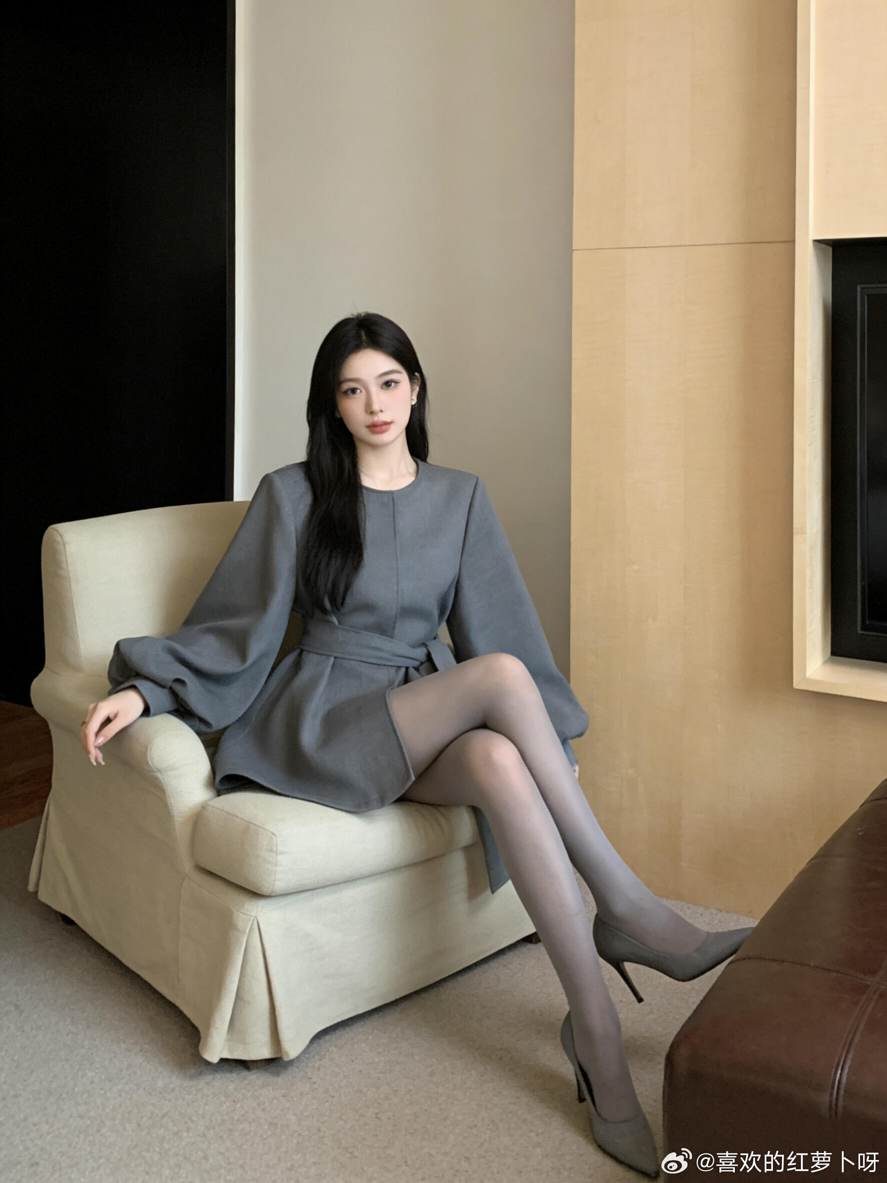 优雅灰裙,性感开衩,时尚穿搭