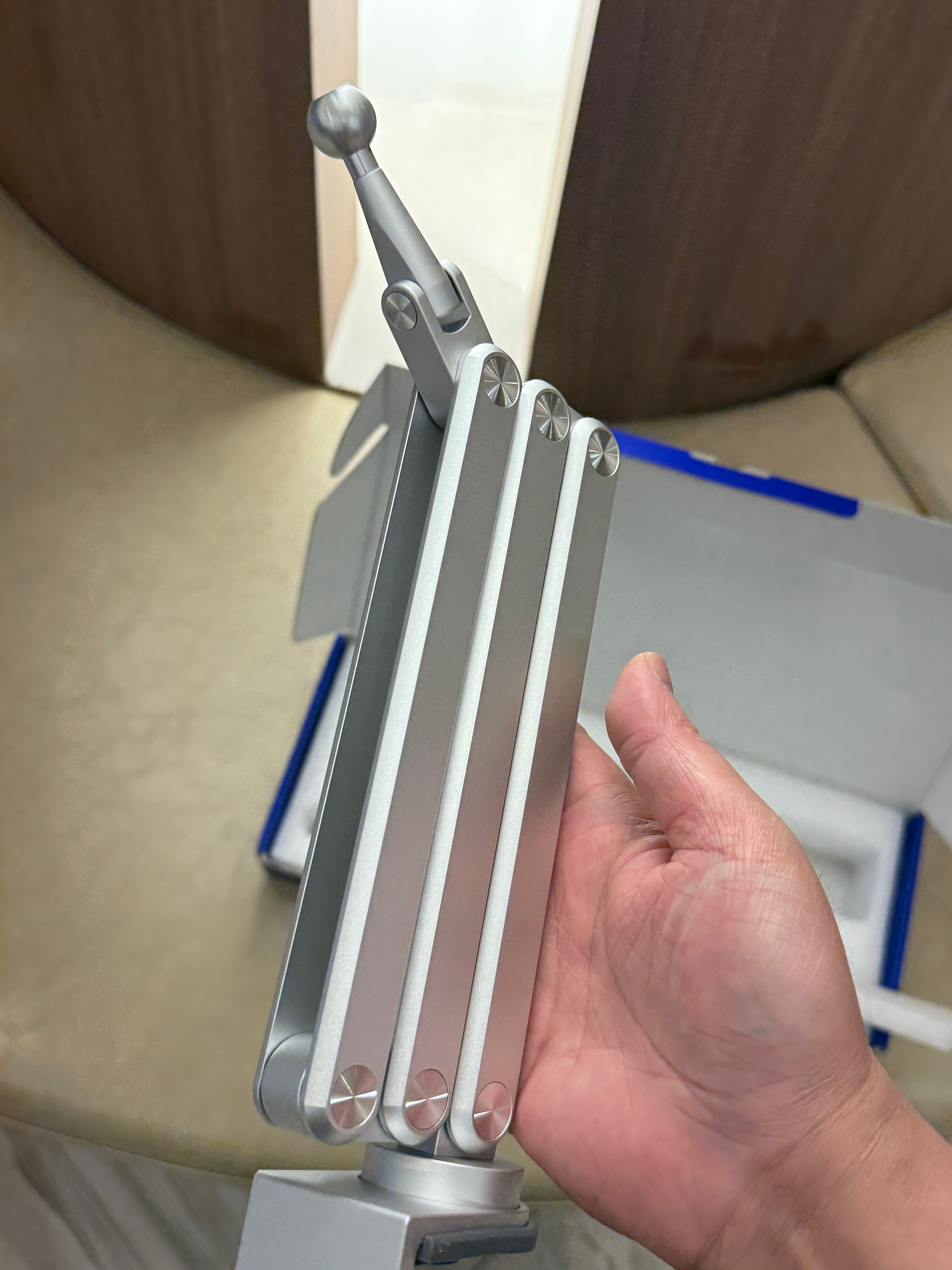 上次有朋友问我能不能搞一个高级点的支架,这不就来了嘛看看这个粗壮的铝合金杆,全铝合金材质,就连球头都是铝合金。全身8各可调可活动的关节。等我再用几天,没问题就要给工厂下订单了