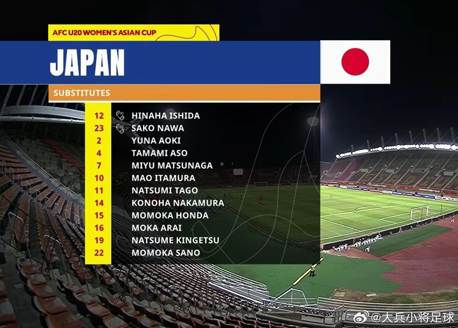 日本足球小将【比赛日·先发】u20日本女子代表在泰国举行的 2026年亚足联U20女足亚洲杯(2026 AFC U-20 Women's Asian Cup)C组第1戦:(u20日本女子代表 信息:网页链接)