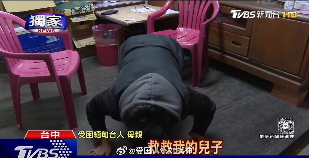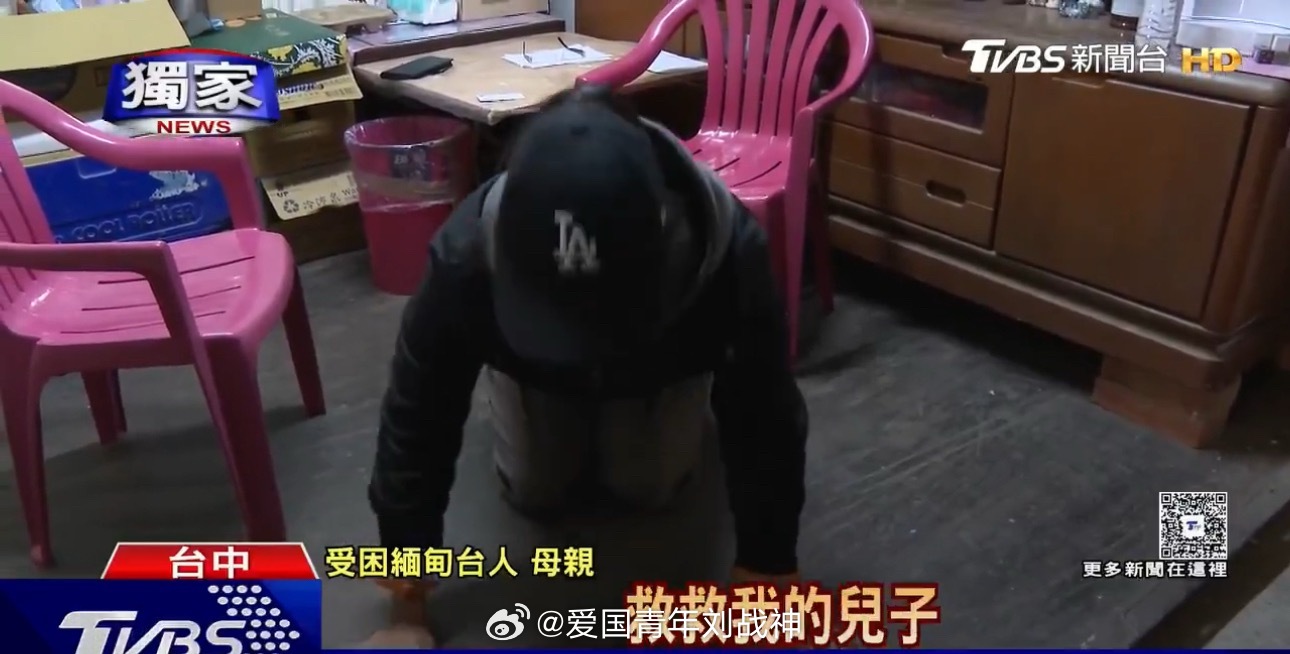 台湾省一位老妇对着电视台镜头跪求台当局和国际刑警救救她被骗去缅甸的儿子……
