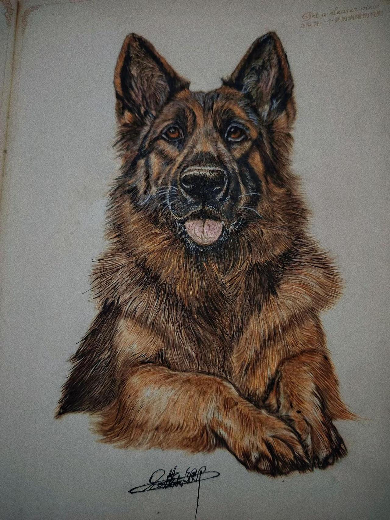 烙画作品德国牧羊犬。狗狗是人类最忠实的朋友