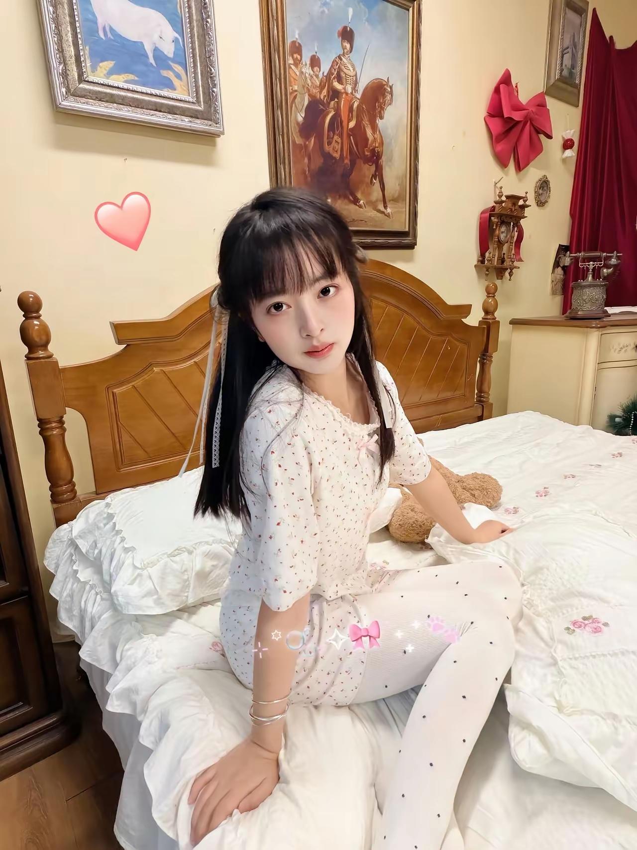 猫耳少女在梦幻卧室里,可爱满分!🐱💖